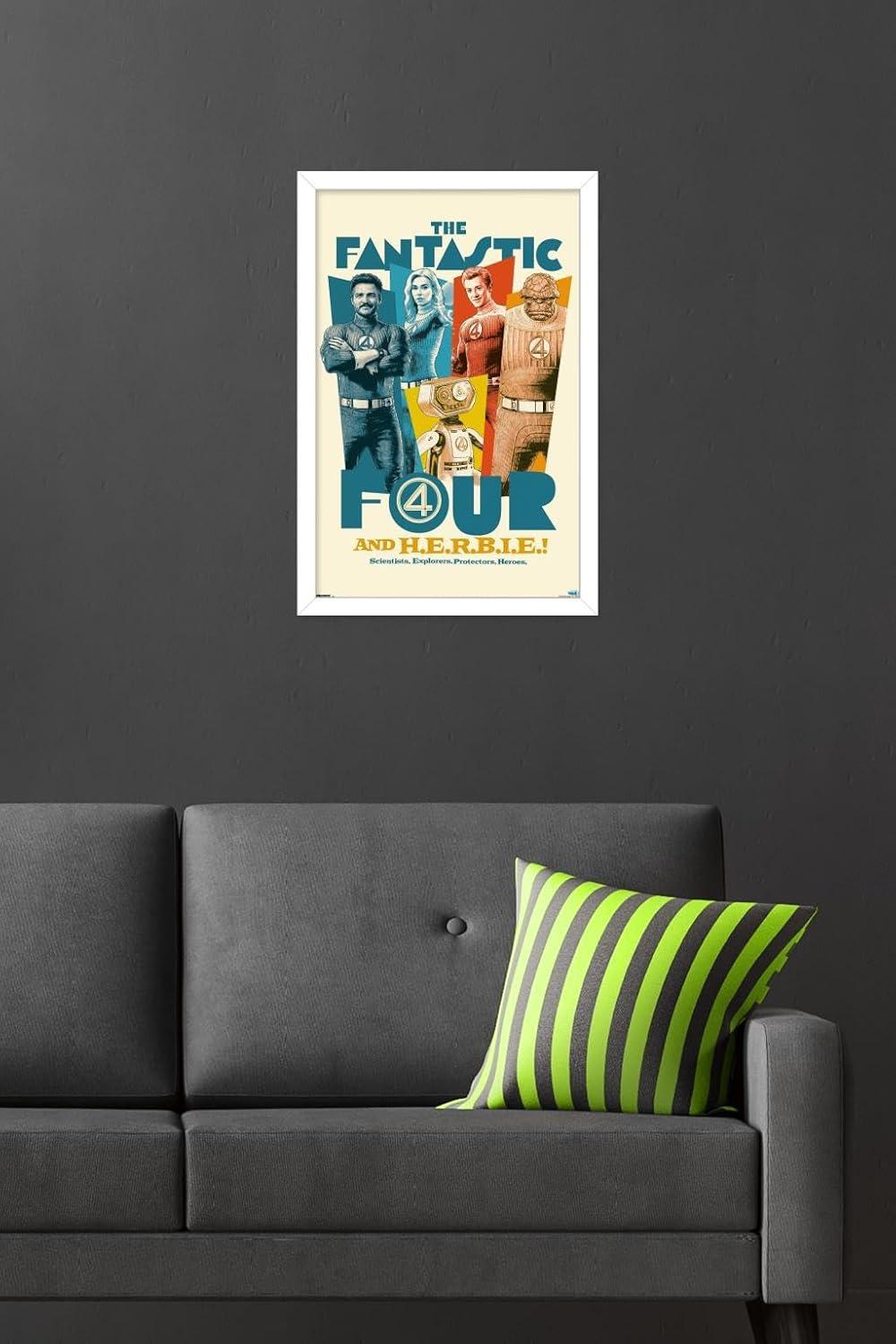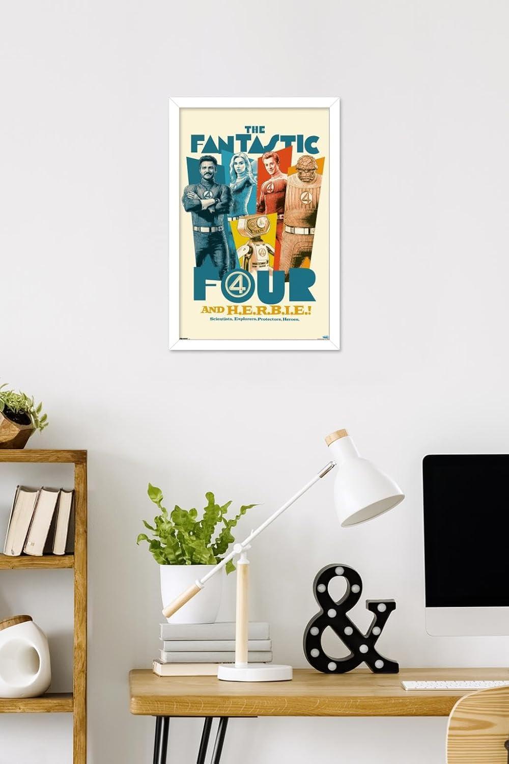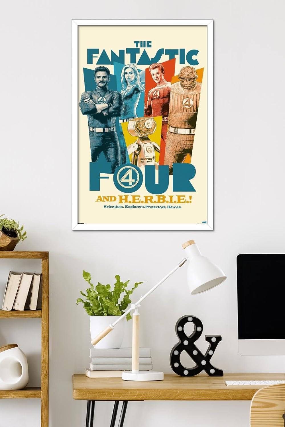 Trends International Marvel Fantastic Four: First Steps (2025) – F4 And H.E.R.B.I.E. Wall Poster, 34L x 22.4W, Premium Unframed Version(White Framed Version)