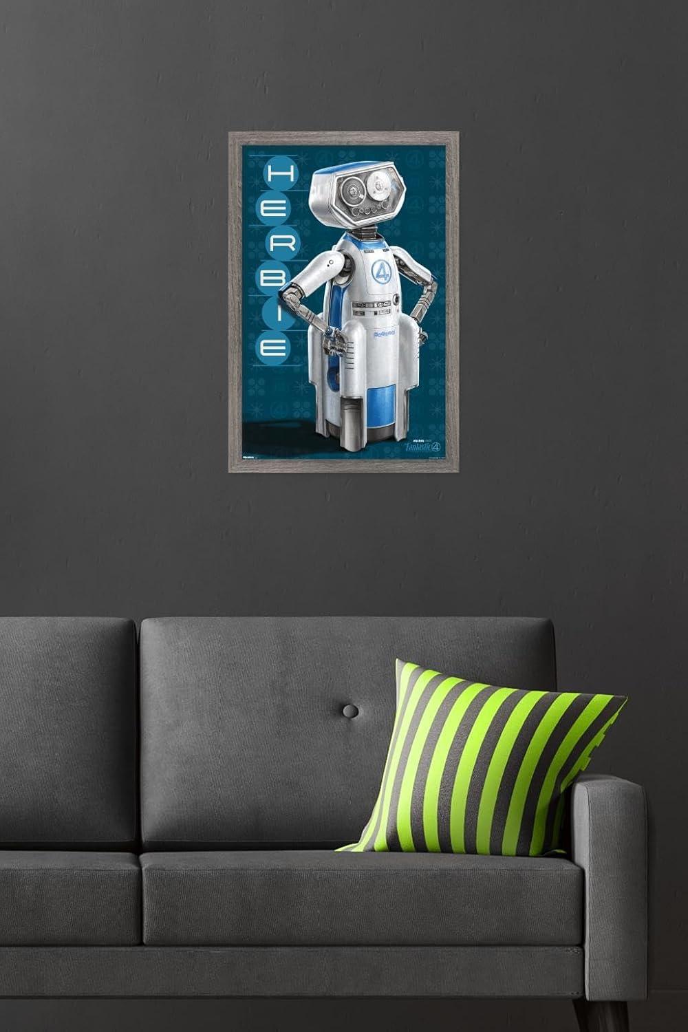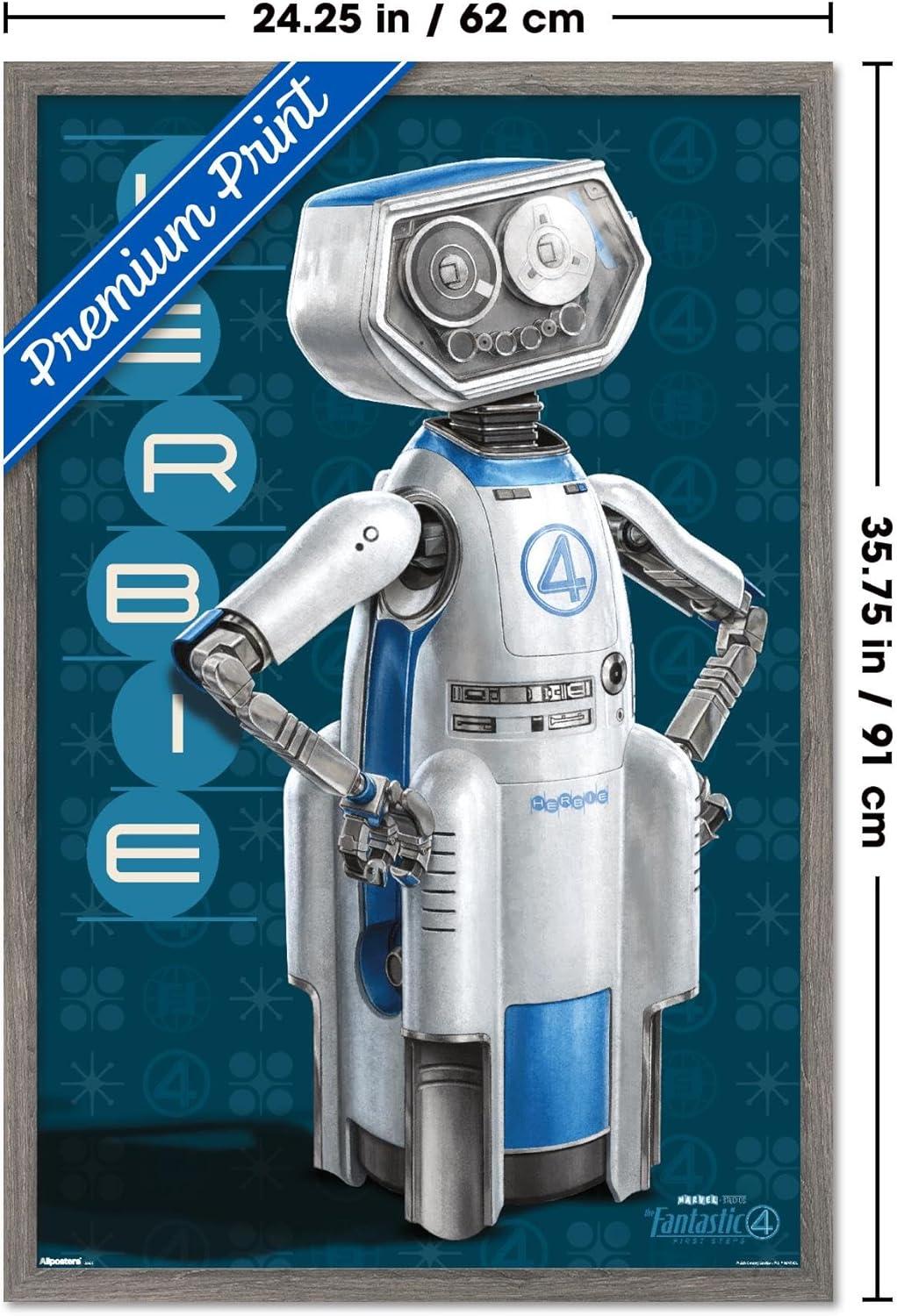 Trends International Marvel Fantastic Four: First Steps (2025) – H.E.R.B.I.E. Wall Poster, 22.4L x 14.7W, Barnwood Framed Version(Barnwood Framed Version)