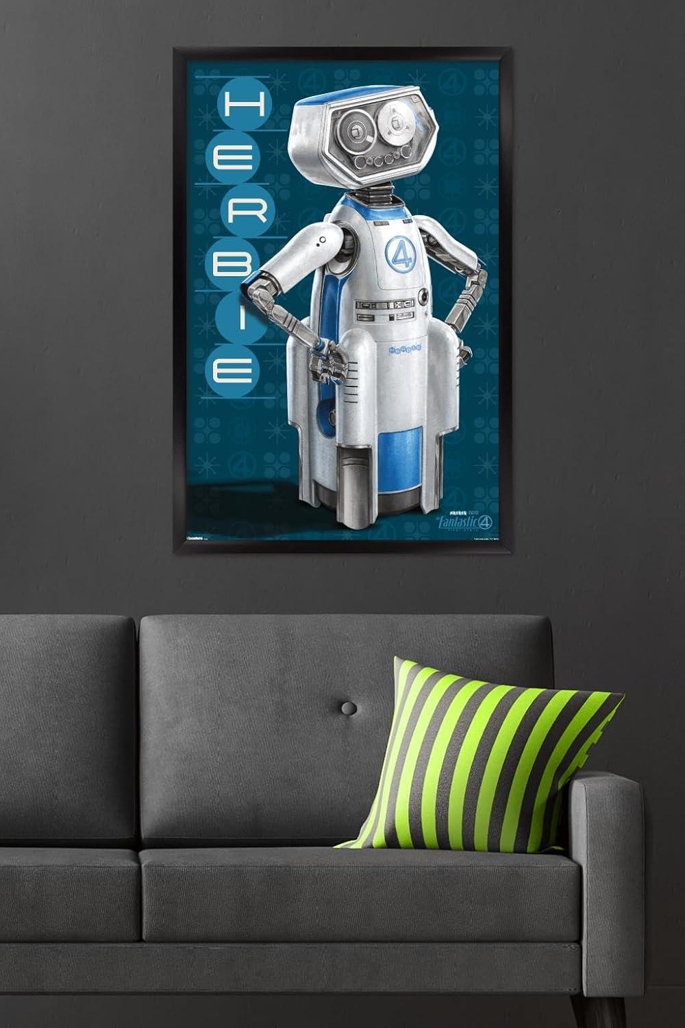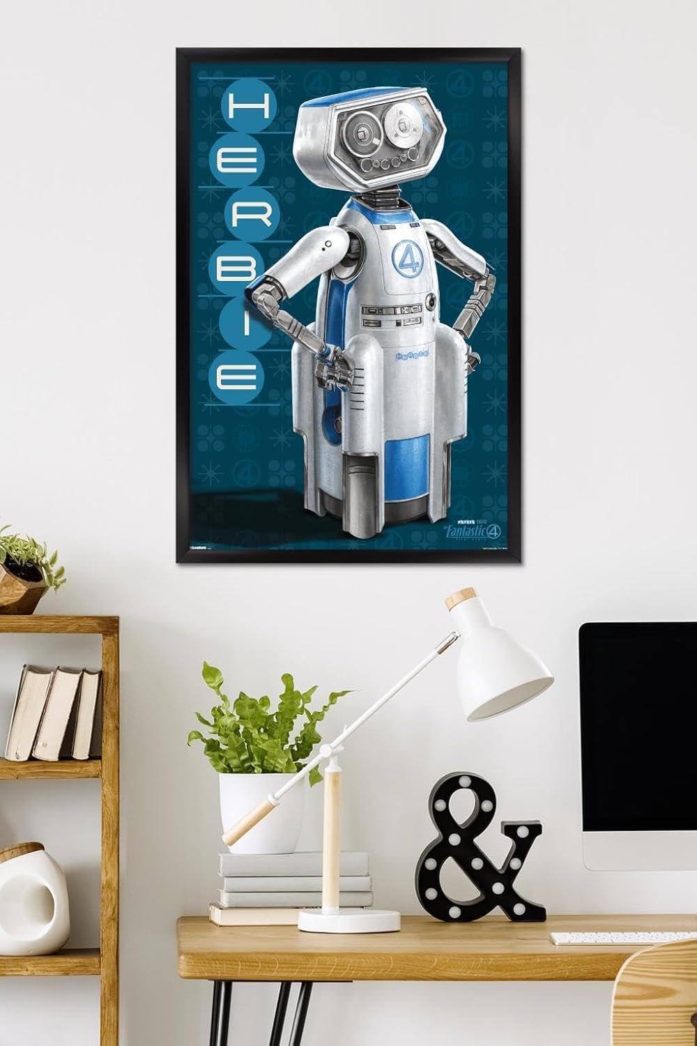 Trends International Marvel Fantastic Four: First Steps (2025) – H.E.R.B.I.E. Wall Poster, 22.4L x 14.7W, Barnwood Framed Version(Black Framed Version)