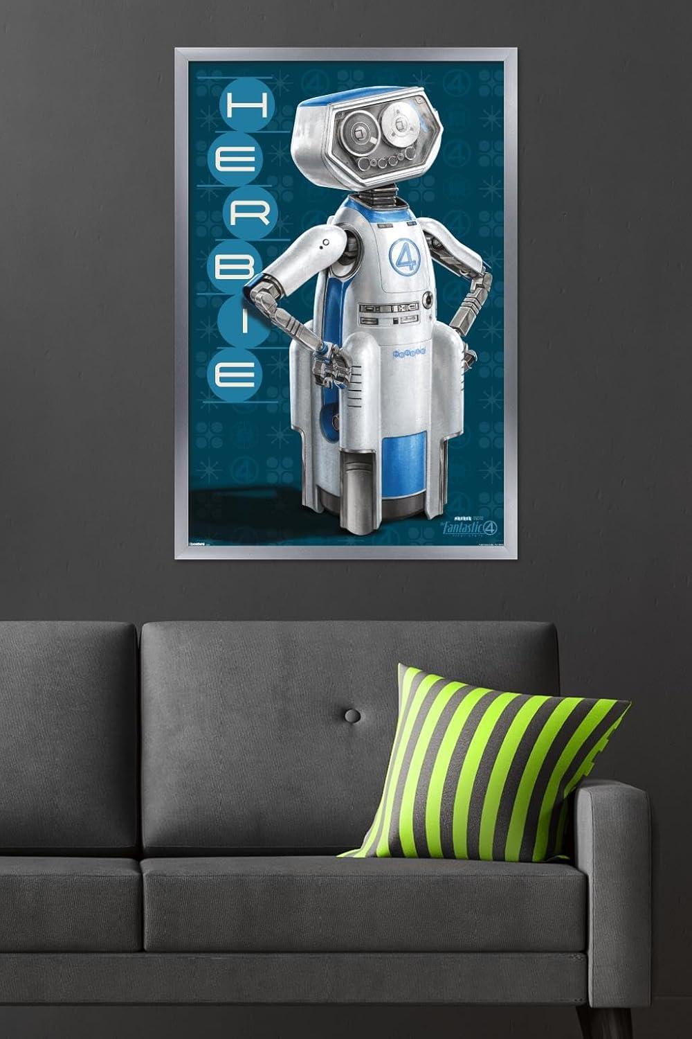Trends International Marvel Fantastic Four: First Steps (2025) – H.E.R.B.I.E. Wall Poster, 22.4L x 14.7W, Barnwood Framed Version(Silver Framed Version)