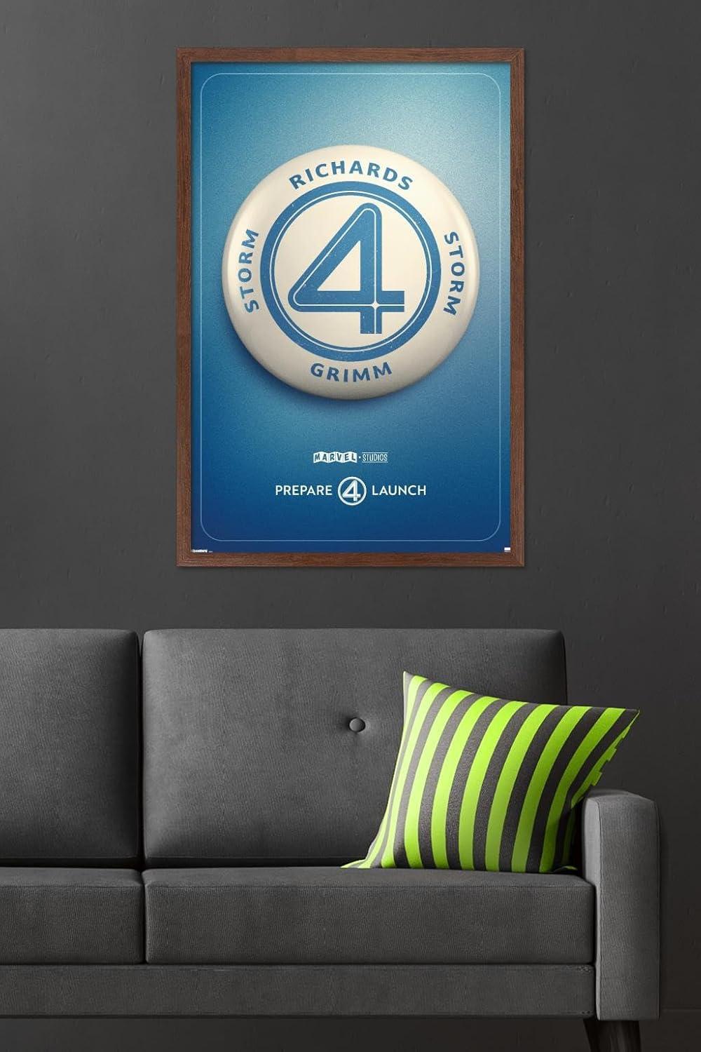 Trends International Marvel Fantastic Four: First Steps – Button One Sheet Wall Poster, 34L x 22.4W, Premium Unframed Version(Mahogany Framed Version)
