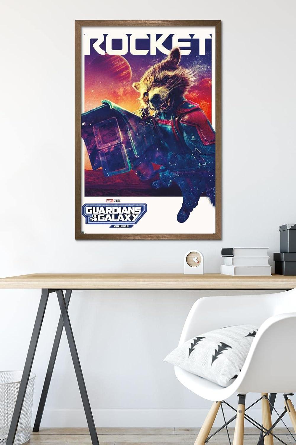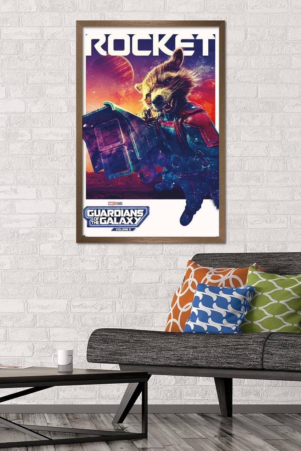 Trends International Marvel Guardians of the Galaxy Vol. 3 – Rocket One Sheet Wall Poster, 34L x 22.4W, Premium Unframed Version(Blonde Framed Version)