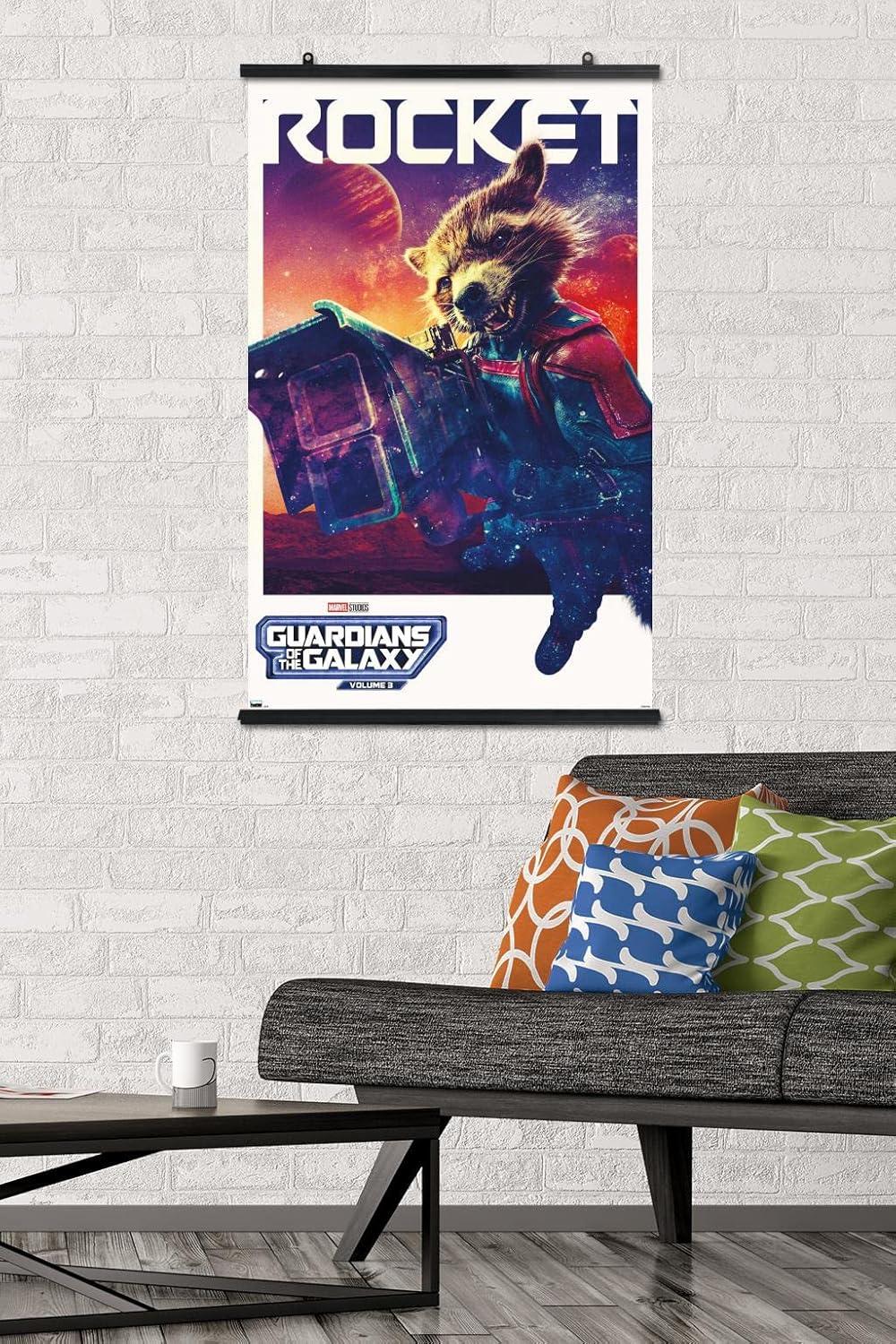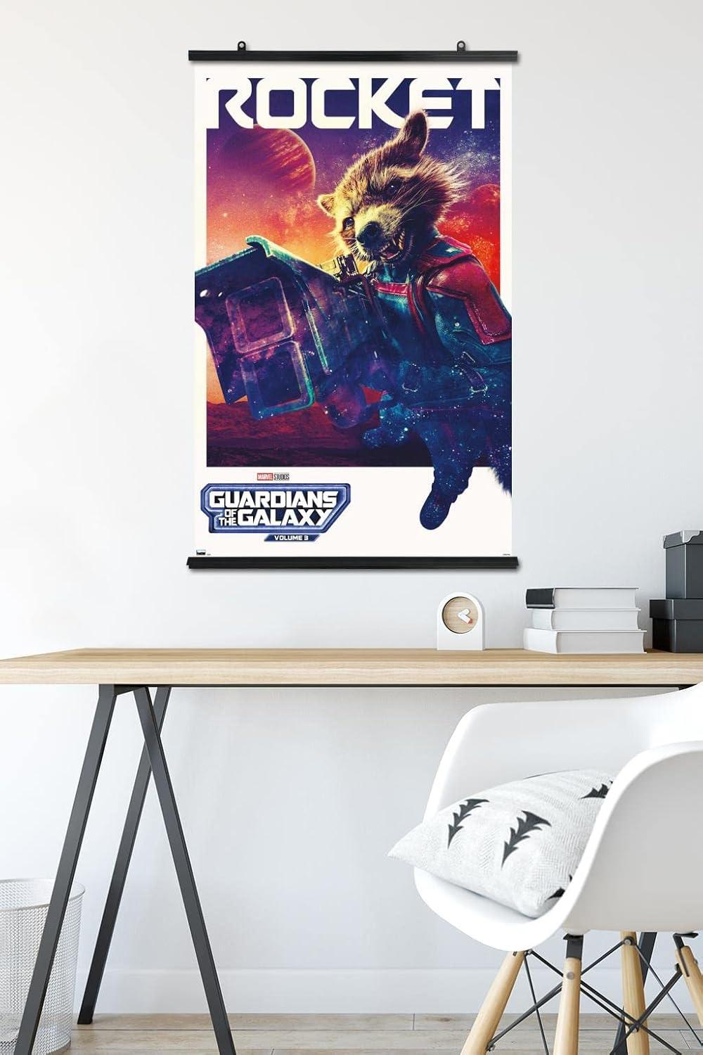 Trends International wall posters are everyone's favorite room decor! This Marvel Guardians of the Galaxy Vol. 3 – Rocket One Sheet Wall Poster is created with high-resolution artwork and is printed on glossy poster paper which enhances the colors to make a bold wall decor statement in any room. Decorate the bedroom, bathroom, kid's room, living room, office, dorm, and more! Our art prints are lightweight and easy to hang using the included adhesive poster mounts that won't leave holes in your poster or damage your wall like nails, thumb tacks, or push pins. Every one of our premium posters are proudly Made in the USA. Add these decorations alongside the other accessories on your party supplies list too! Trends International's wall posters are the perfect way to dress up your parties. Poster bundles make great gifts as well! Whether it's for a birthday, Christmas, house warming or for your best friend, they'll love receiving a poster and mount bundle to show off their style.
