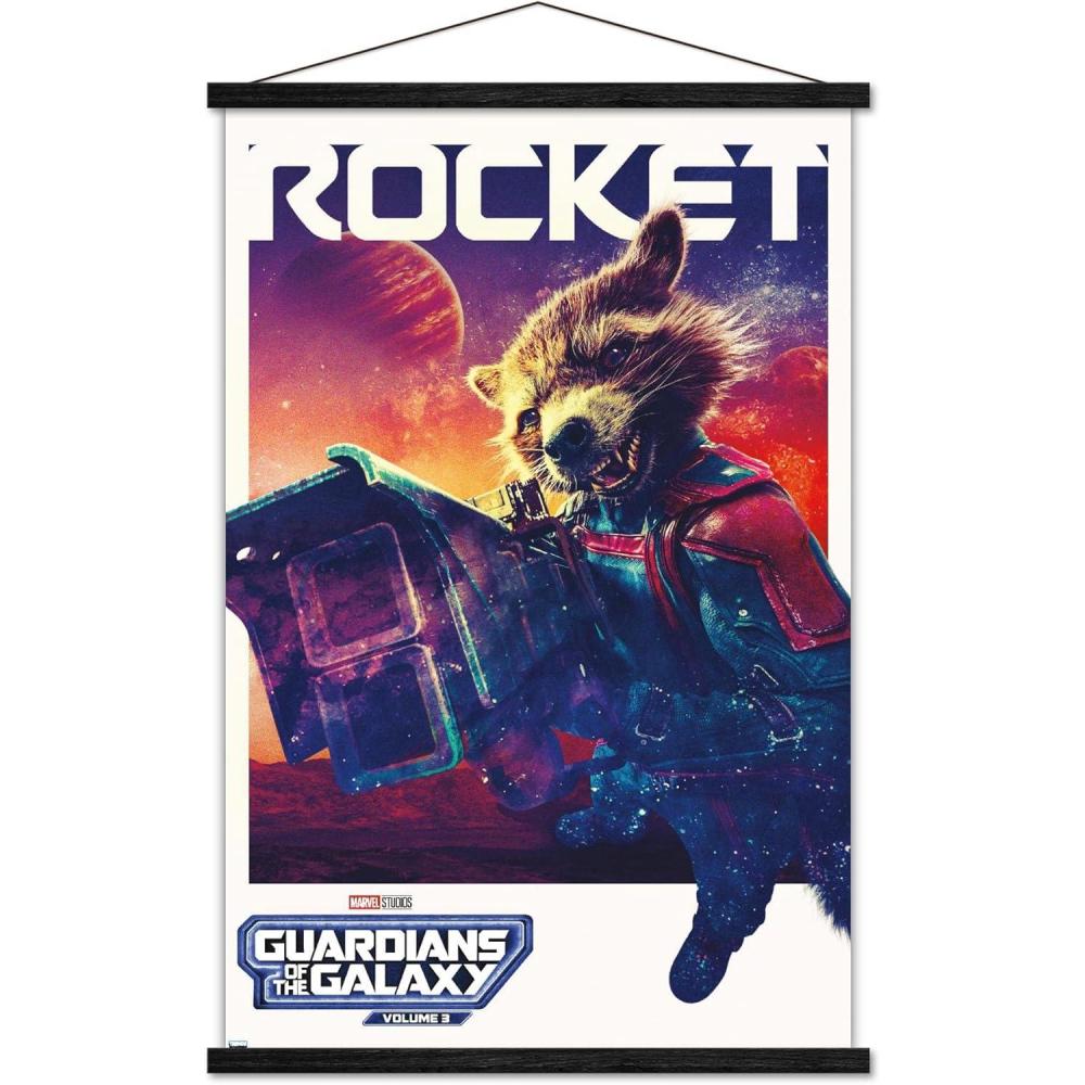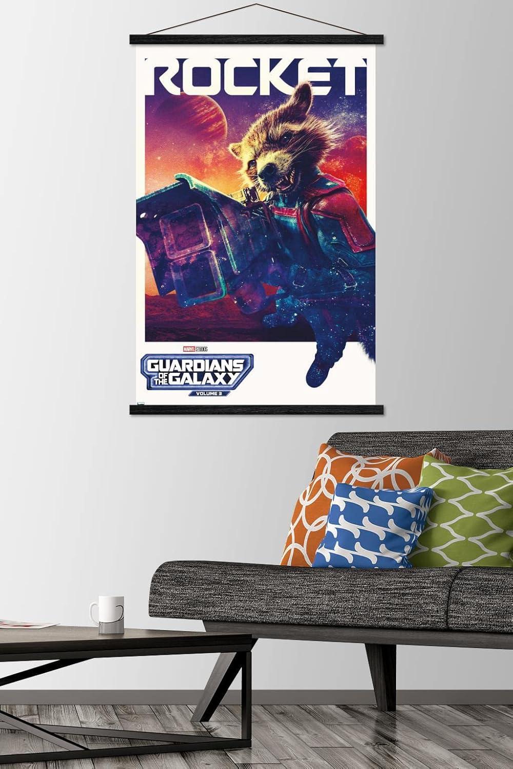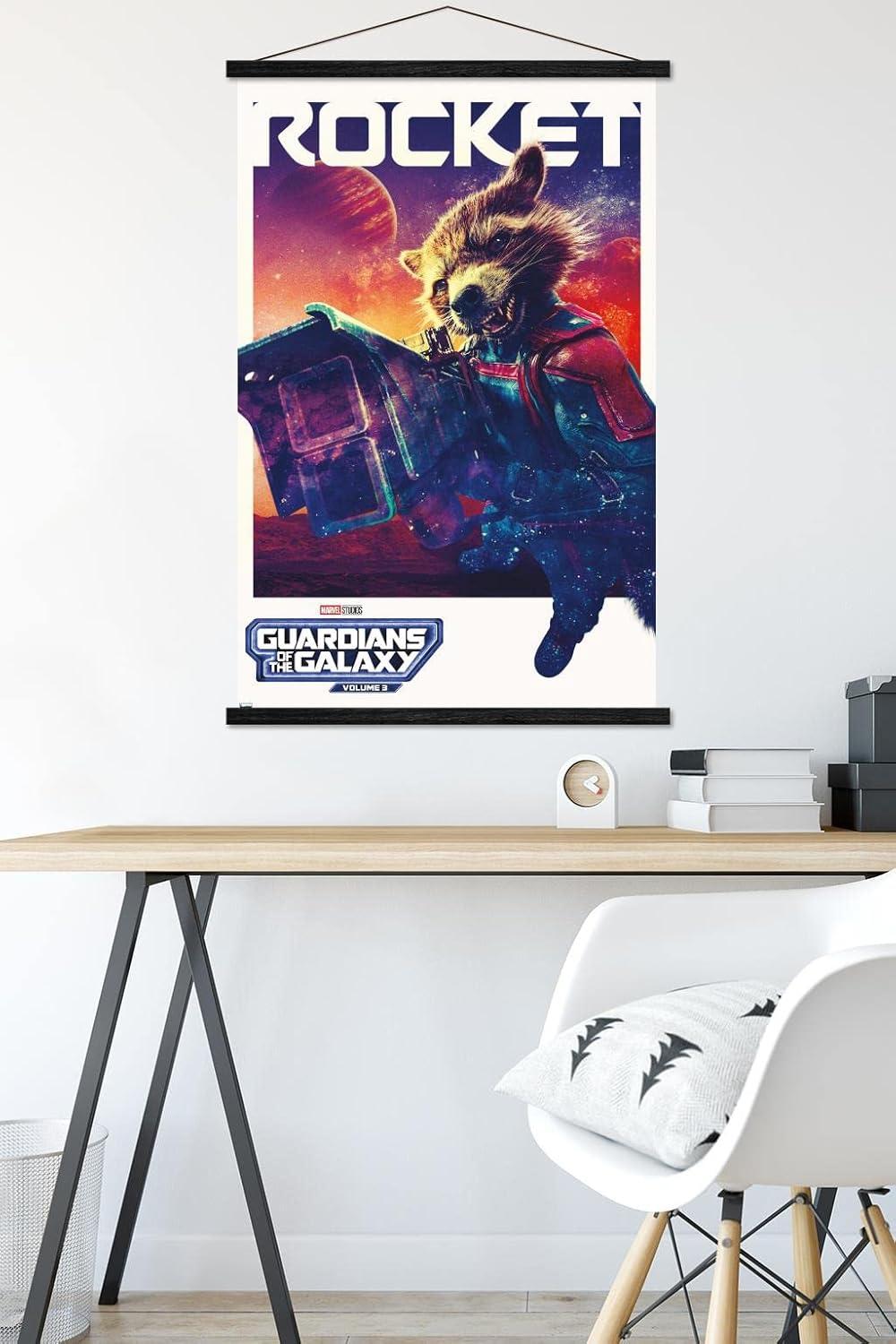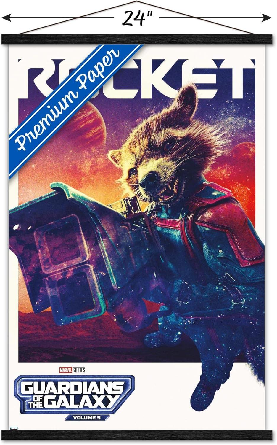 imageTrends International Marvel Guardians of the Galaxy Vol 3  Rocket One Sheet Wall Poster 34L x 224W Premium Unframed VersionPremium Print and Beechwood Hanger Bundle