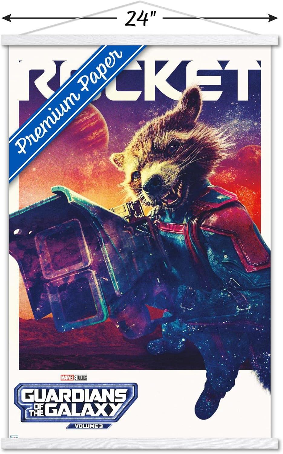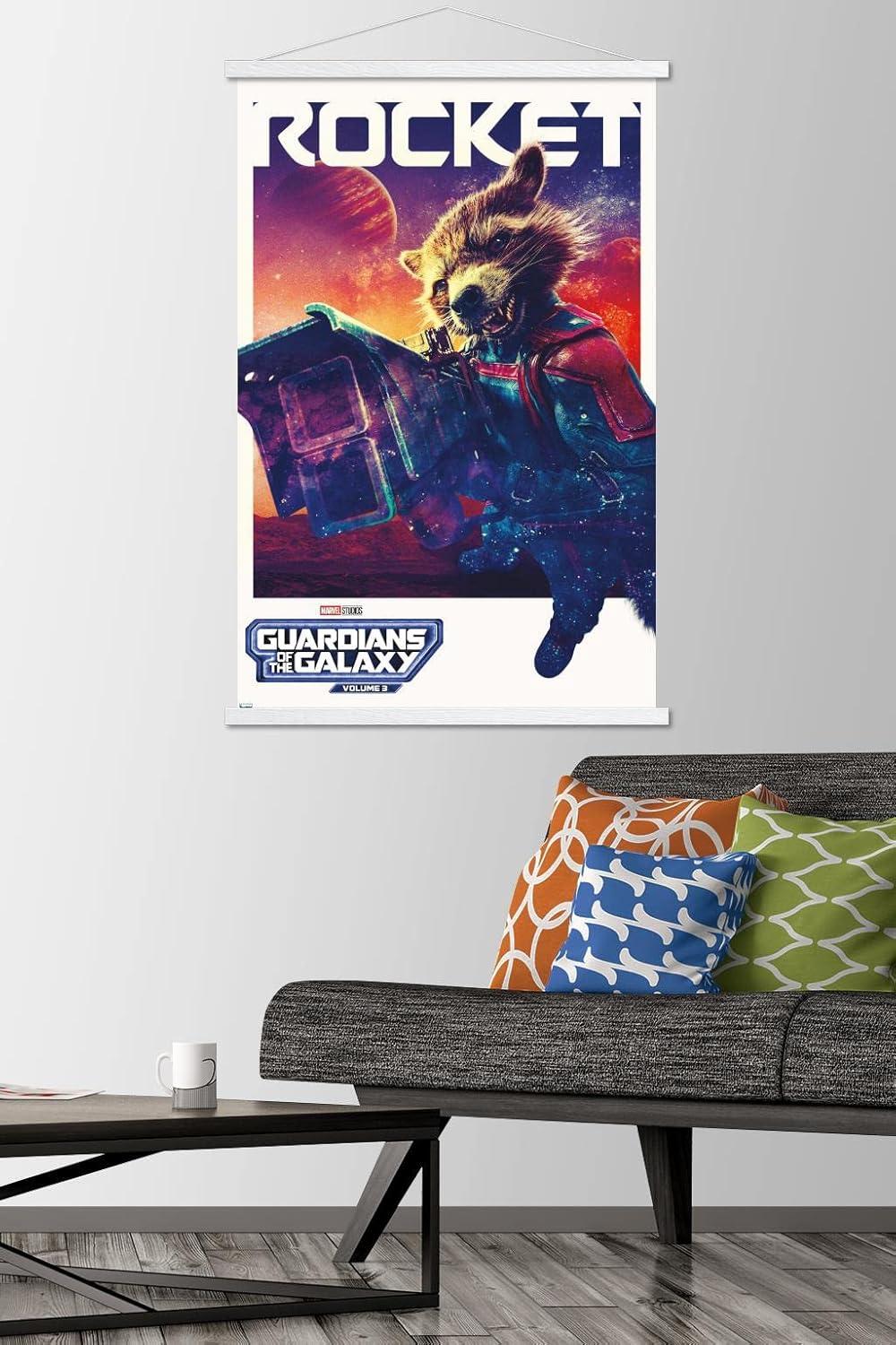 Trends International wall posters are everyone's favorite room decor! This Marvel Guardians of the Galaxy Vol. 3 – Rocket One Sheet Wall Poster is created with high-resolution artwork and is printed on glossy poster paper which enhances the colors to make a bold wall decor statement in any room. Decorate the bedroom, bathroom, kid's room, living room, office, dorm, and more! Our art prints are lightweight and easy to hang using the included adhesive poster mounts that won't leave holes in your poster or damage your wall like nails, thumb tacks, or push pins. Every one of our premium posters are proudly Made in the USA. Add these decorations alongside the other accessories on your party supplies list too! Trends International's wall posters are the perfect way to dress up your parties. Poster bundles make great gifts as well! Whether it's for a birthday, Christmas, house warming or for your best friend, they'll love receiving a poster and mount bundle to show off their style.