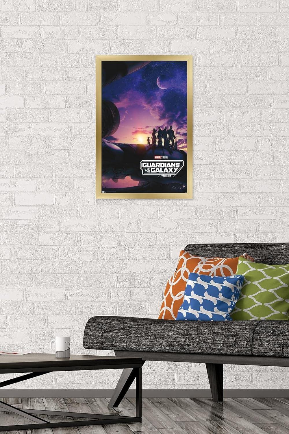 Trends International wall posters are everyone's favorite room decor! This Marvel Guardians of the Galaxy Vol. 3 – Teaser One Sheet Wall Poster is created with high-resolution artwork and is printed on glossy poster paper which enhances the colors to make a bold wall decor statement in any room. Decorate the bedroom, bathroom, kid's room, living room, office, dorm, and more! Our art prints are lightweight and easy to hang using the included adhesive poster mounts that won't leave holes in your poster or damage your wall like nails, thumb tacks, or push pins. Every one of our premium posters are proudly Made in the USA. Add these decorations alongside the other accessories on your party supplies list too! Trends International's wall posters are the perfect way to dress up your parties. Poster bundles make great gifts as well! Whether it's for a birthday, Christmas, house warming or for your best friend, they'll love receiving a poster and mount bundle to show off their style.