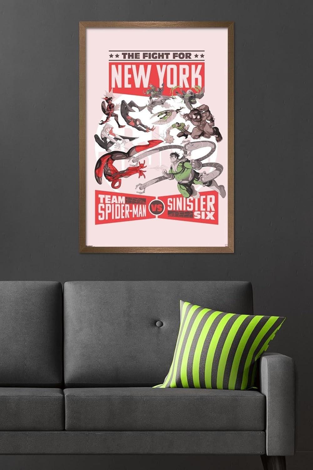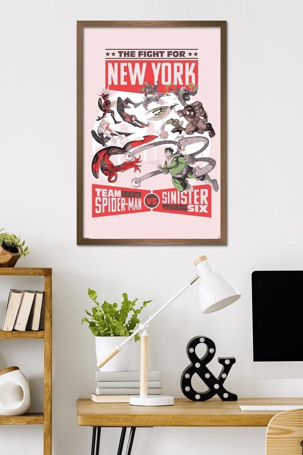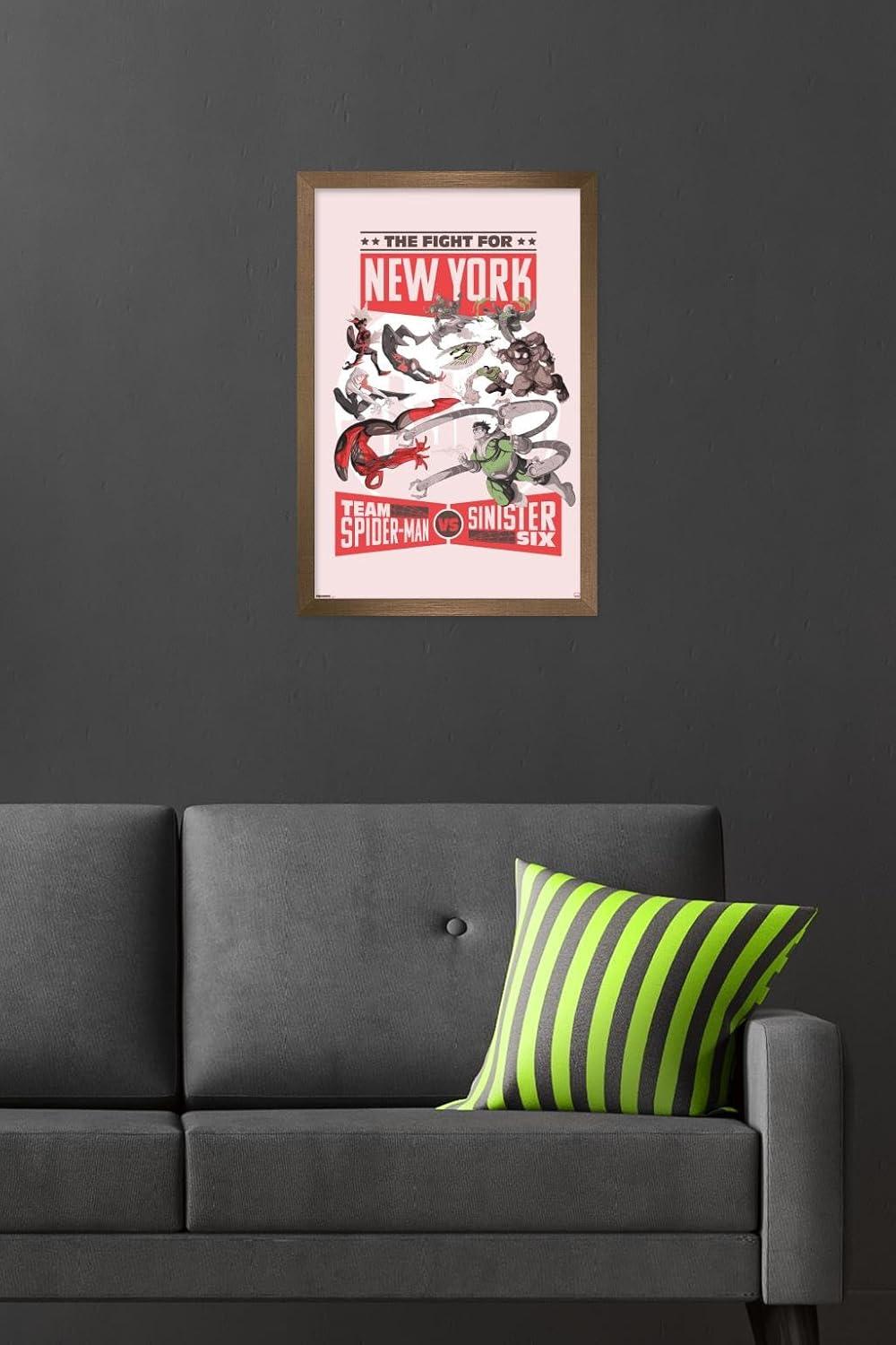 Trends International Marvel: Marvel Vs - Fight For New York Wall Poster, 34L x 22.4W, Premium Unframed Version(Bronze Framed Version)