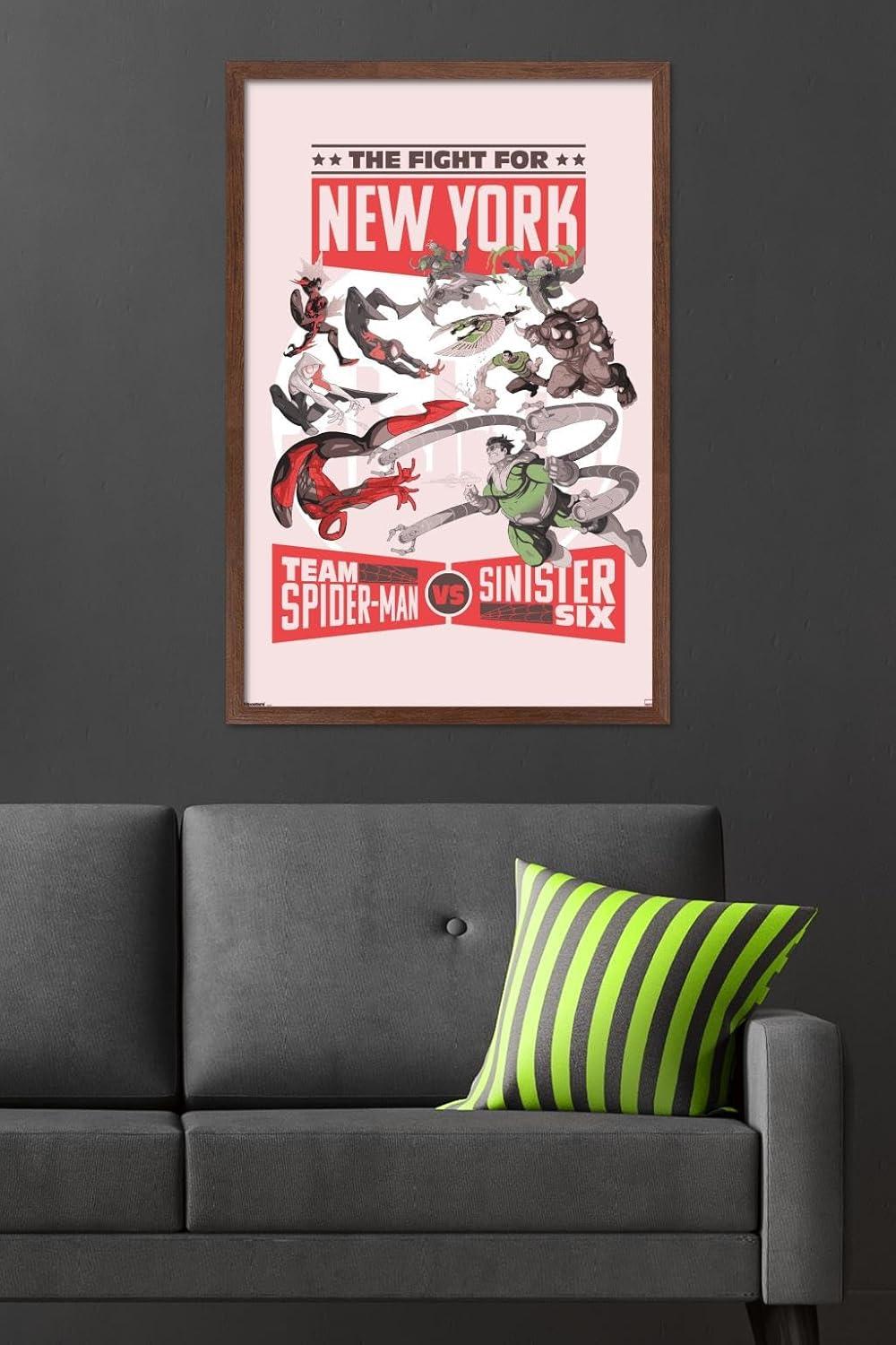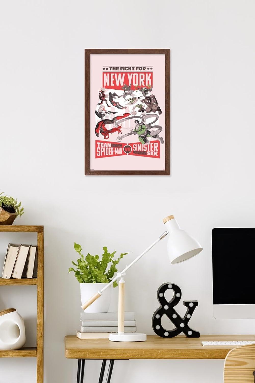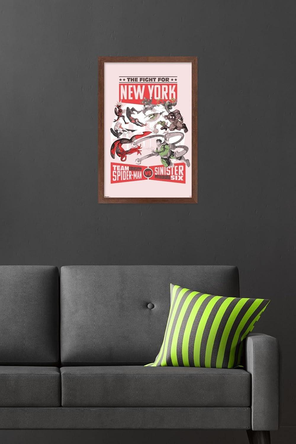 Trends International Marvel: Marvel Vs - Fight For New York Wall Poster, 34L x 22.4W, Premium Unframed Version(Mahogany Framed Version)