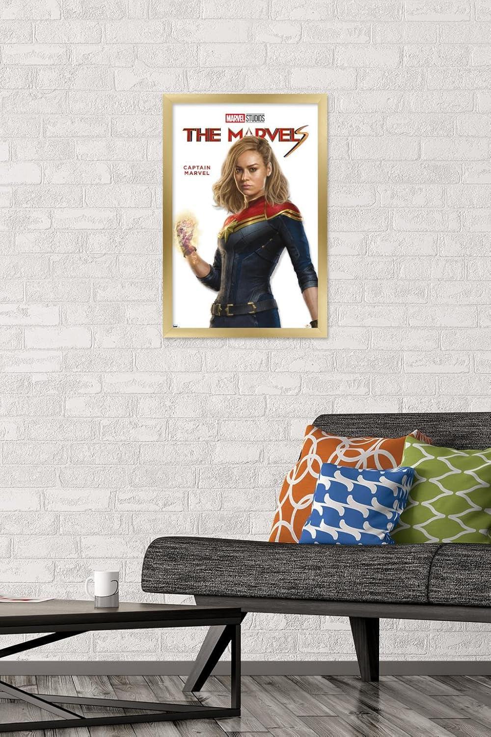 Trends International Marvel The Marvels – Captain Marvel Feature Series Wall Poster, 34L x 22.4W, Premium Unframed Version(Gold Framed Version)