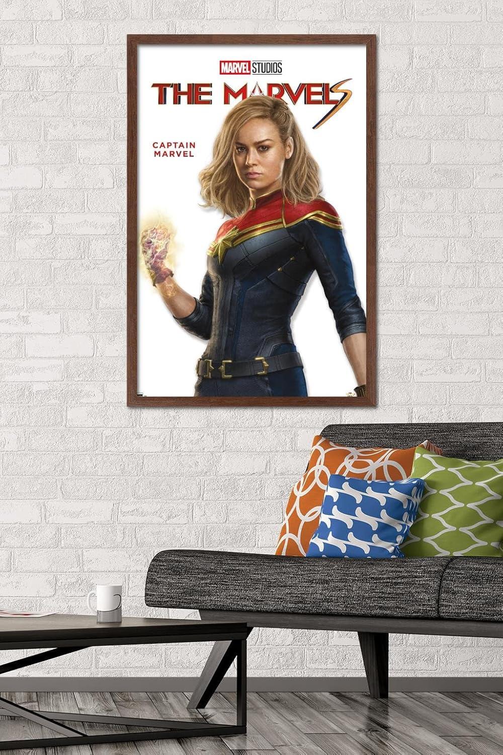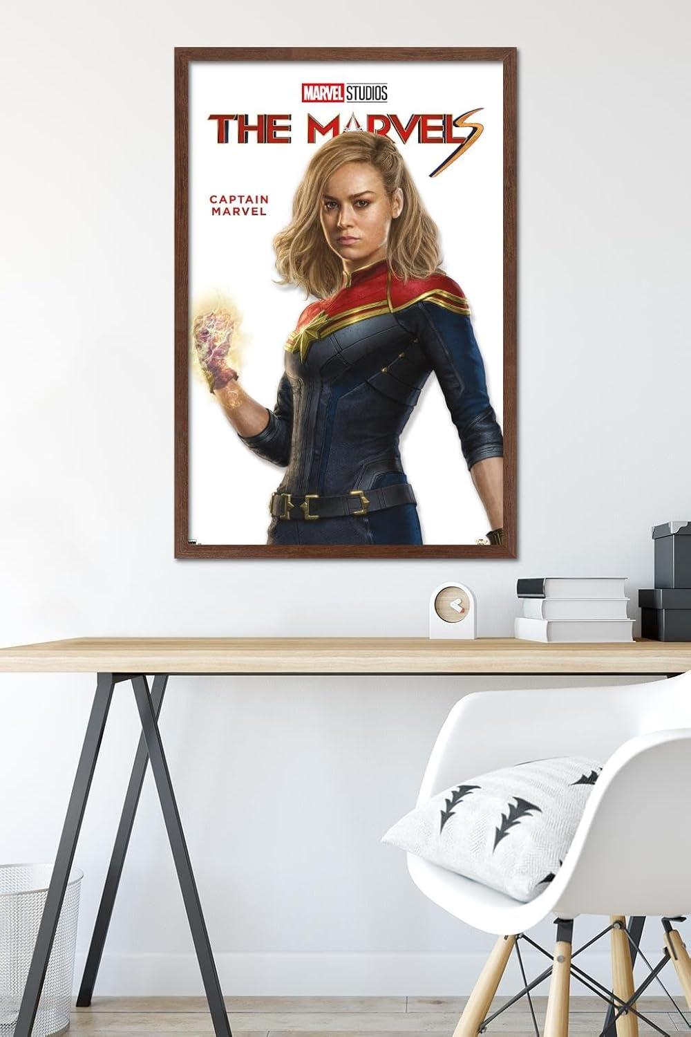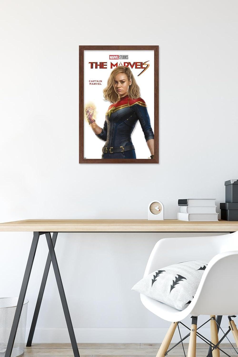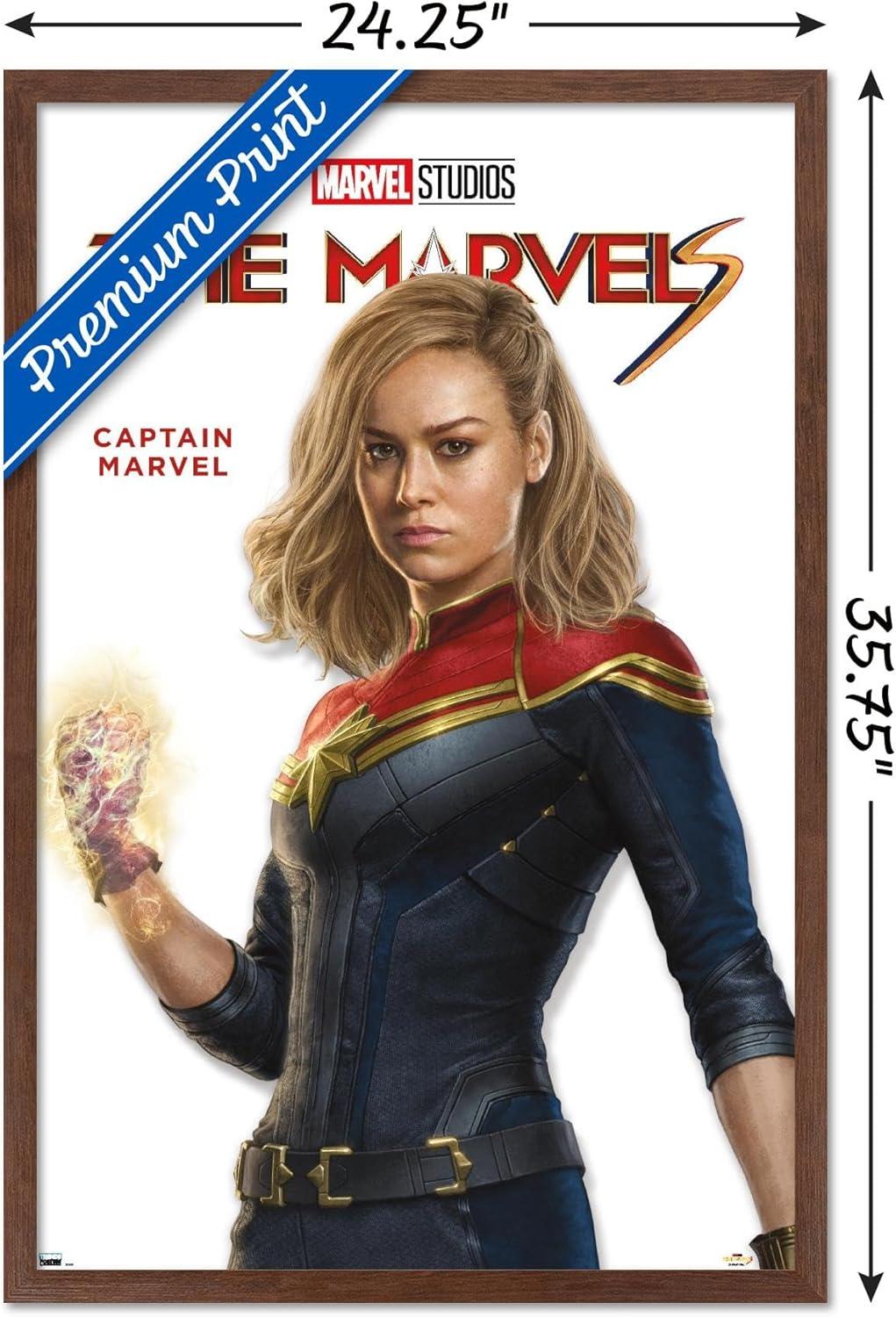 Trends International Marvel The Marvels – Captain Marvel Feature Series Wall Poster, 34L x 22.4W, Premium Unframed Version(Mahogany Framed Version)