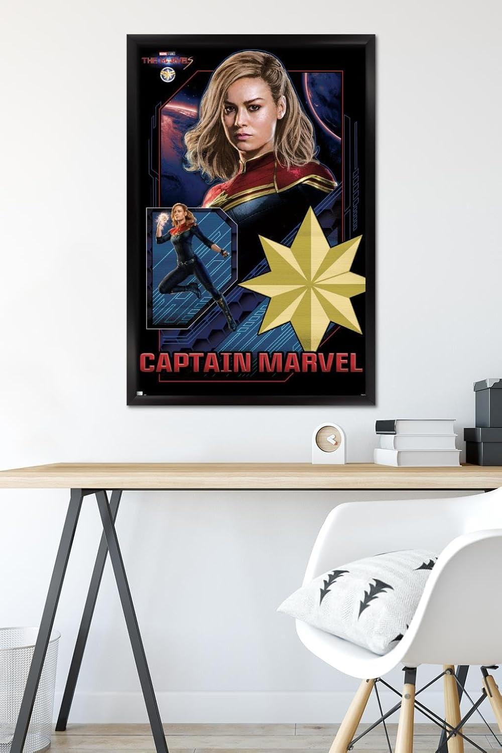 Trends International Marvel The Marvels – Captain Marvel Wall Poster, 34L x 22.4W, Premium Unframed Version(Blonde Framed Version)