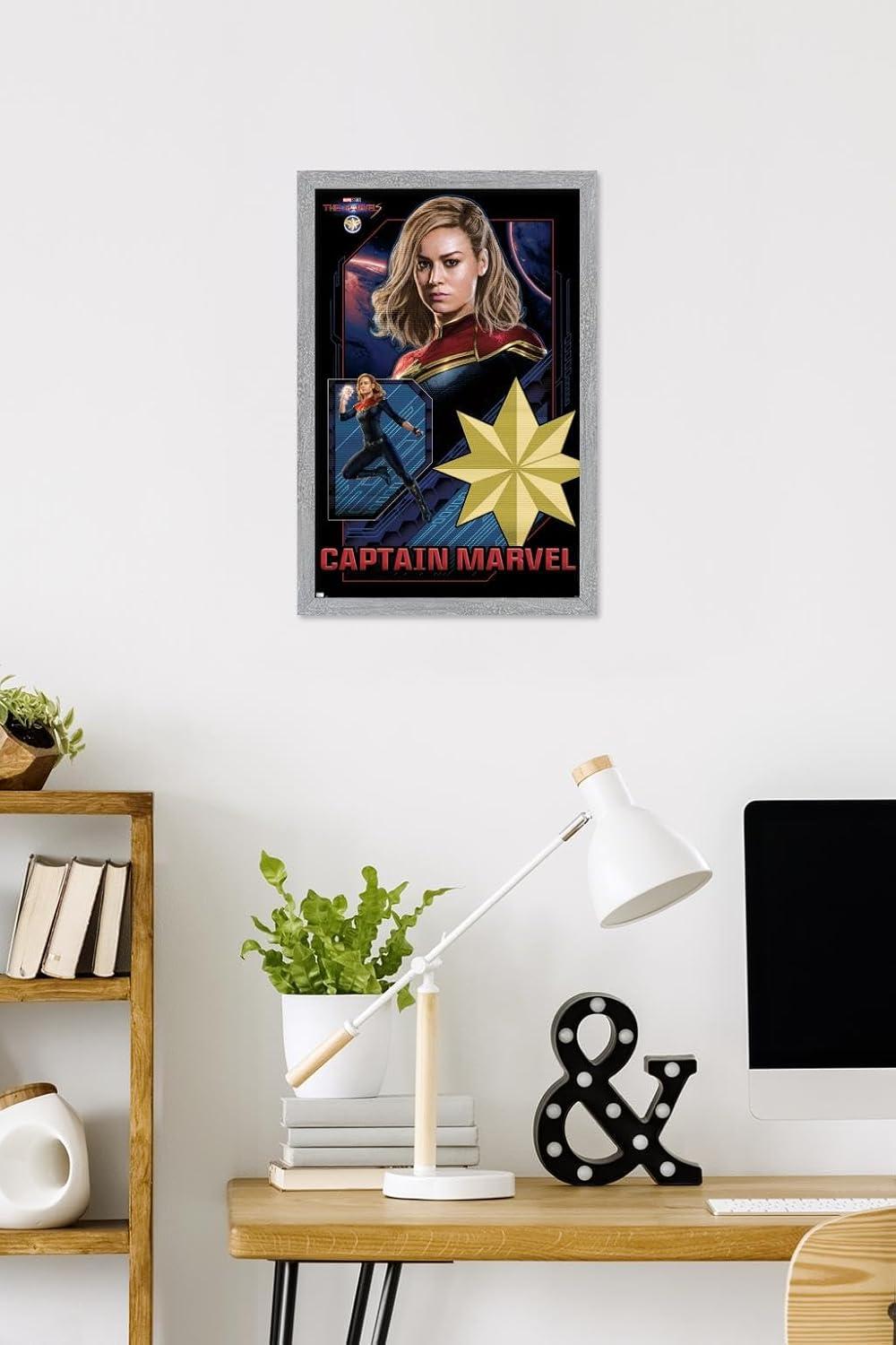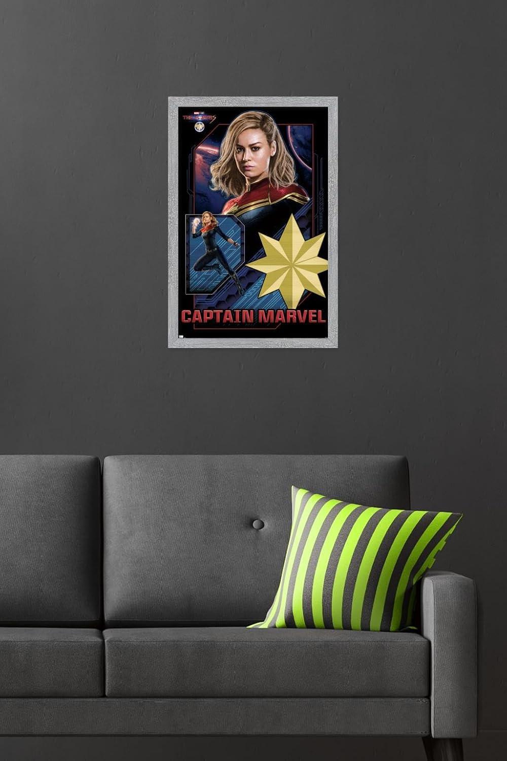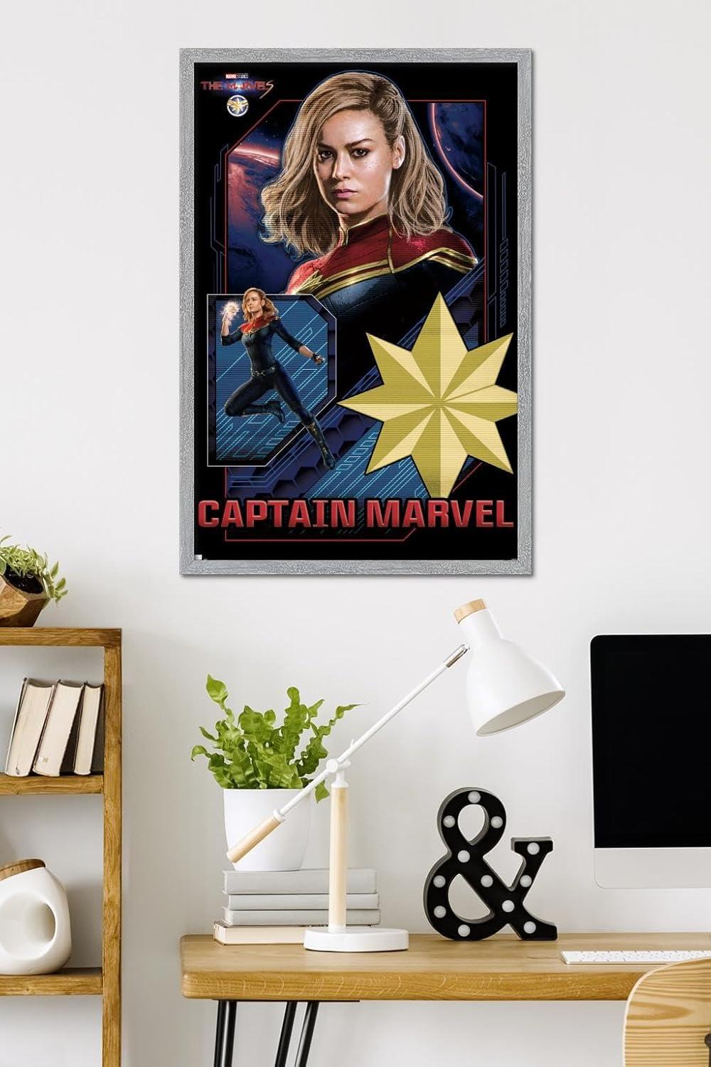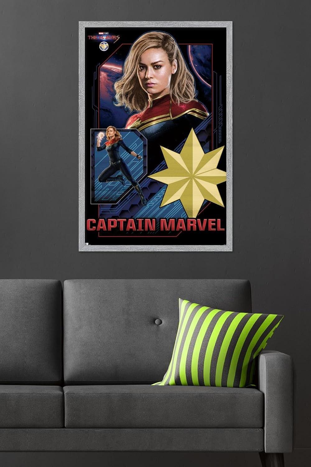 Trends International Marvel The Marvels - Captain Marvel Wall Poster, 34L x 22.4W, Premium Unframed Version(Gray Framed Version)