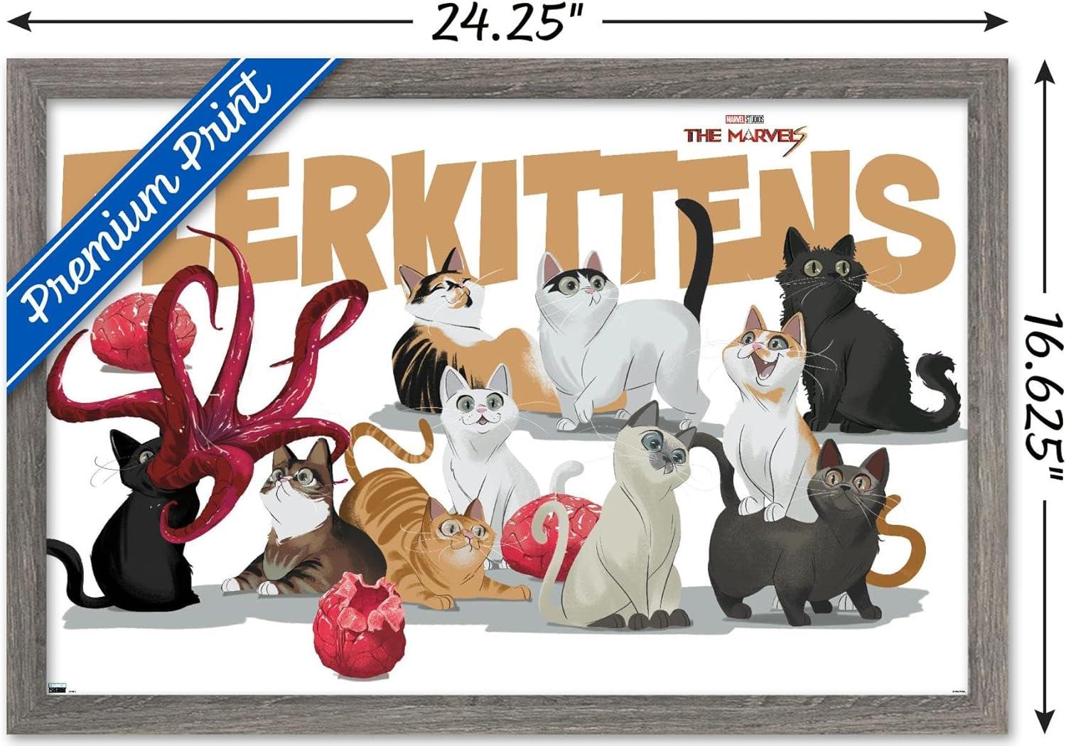 Trends International wall posters are everyone's favorite room decor! This Marvel The Marvels – Flerkittens Wall Poster is created with high-resolution artwork and is printed on glossy poster paper which enhances the colors to make a bold wall decor statement in any room. Decorate the bedroom, bathroom, kid's room, living room, office, dorm, and more! Our art prints are lightweight and easy to hang using the included adhesive poster mounts that won't leave holes in your poster or damage your wall like nails, thumb tacks, or push pins. Every one of our premium posters are proudly Made in the USA. Add these decorations alongside the other accessories on your party supplies list too! Trends International's wall posters are the perfect way to dress up your parties. Poster bundles make great gifts as well! Whether it's for a birthday, Christmas, house warming or for your best friend, they'll love receiving a poster and mount bundle to show off their style.