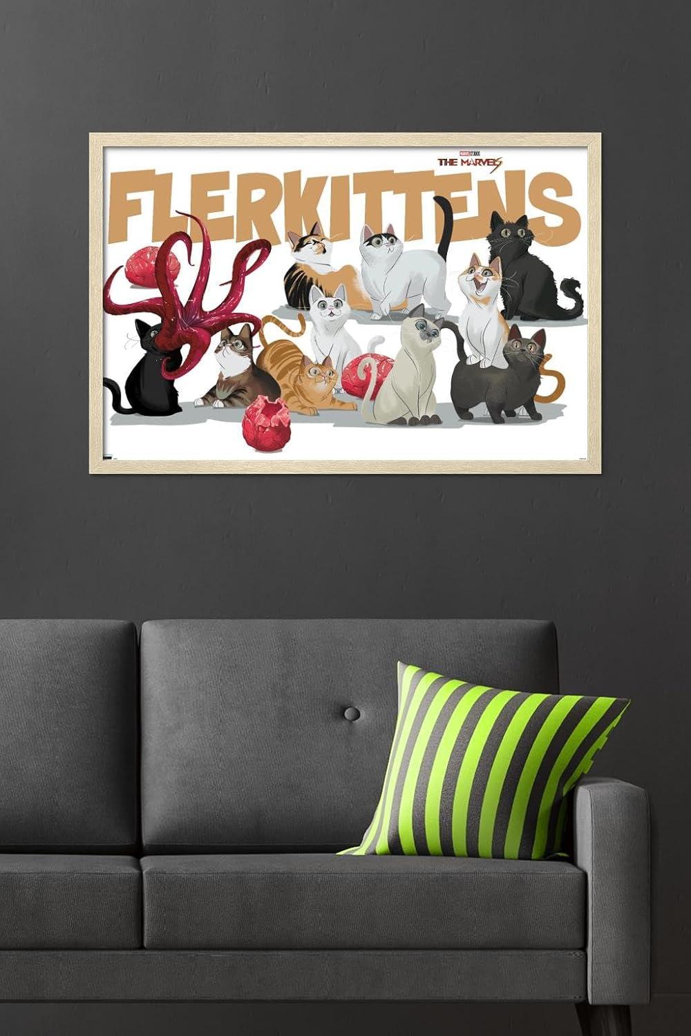 Trends International Marvel The Marvels – Flerkittens Wall Poster, 34L x 22.4W, Premium Unframed Version(Blonde Framed Version)