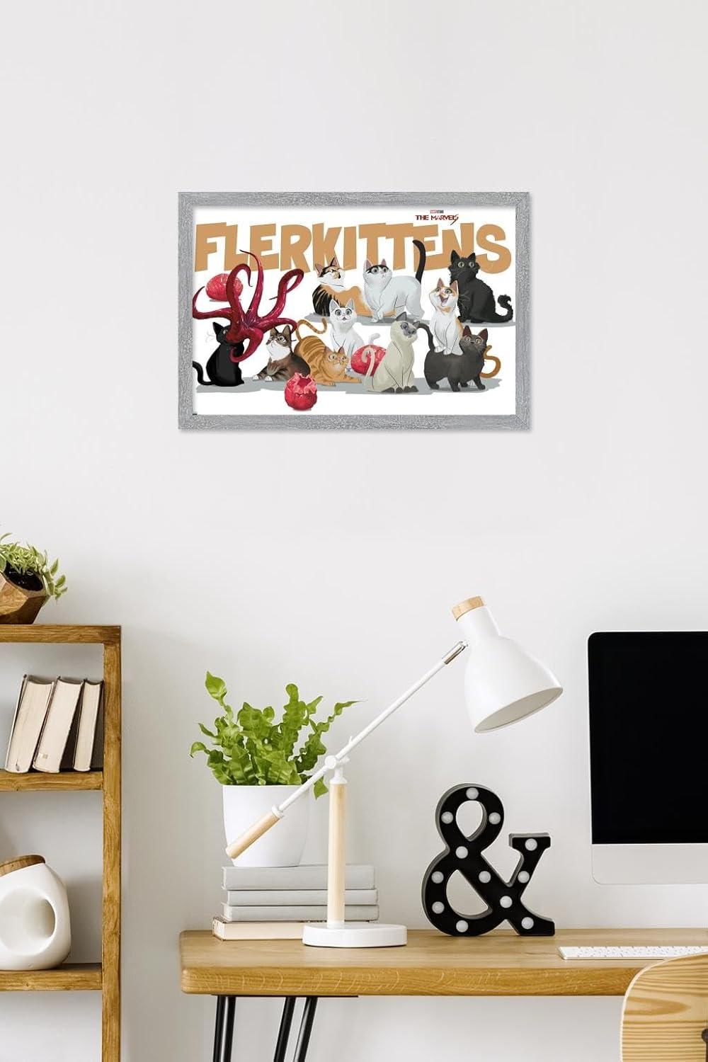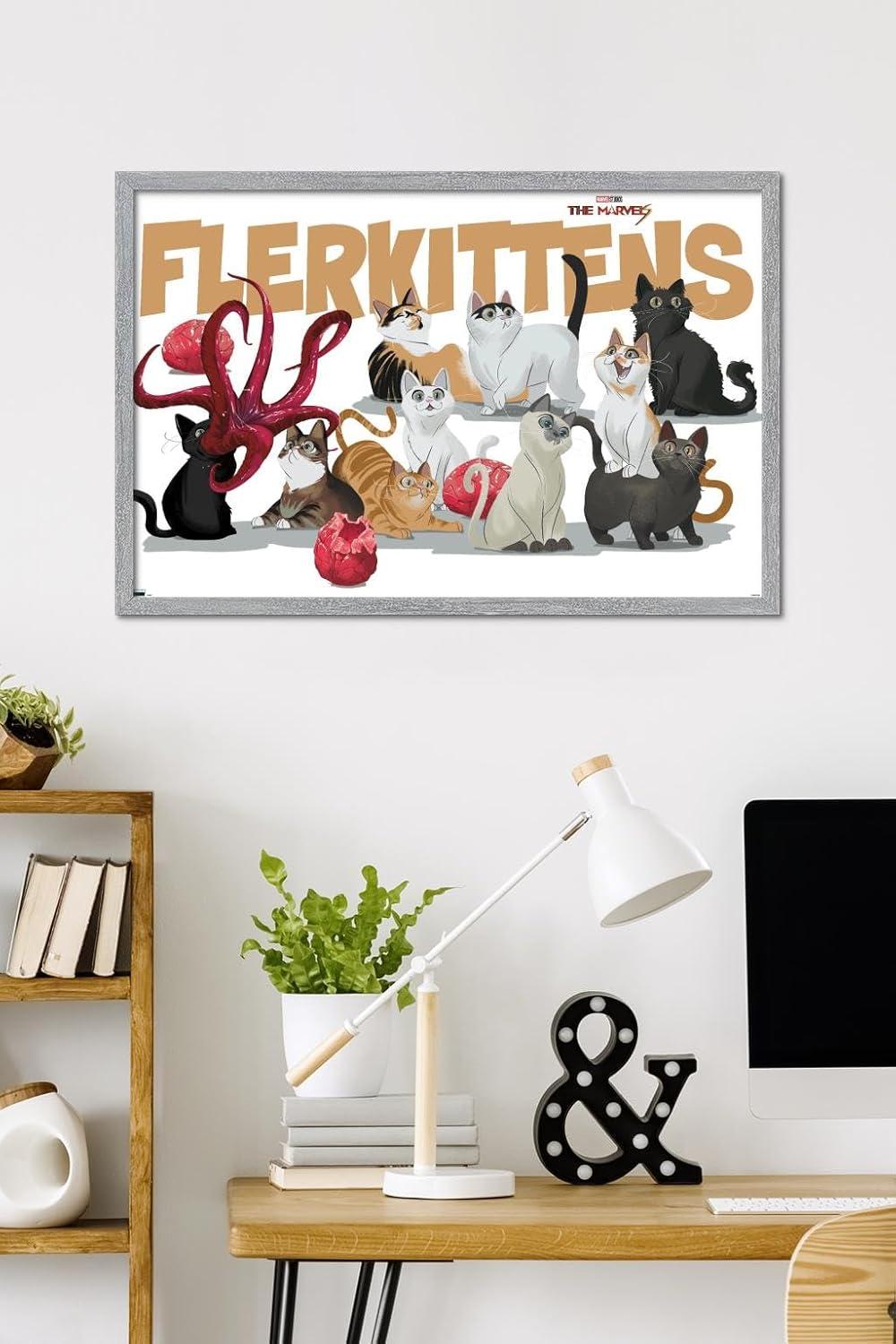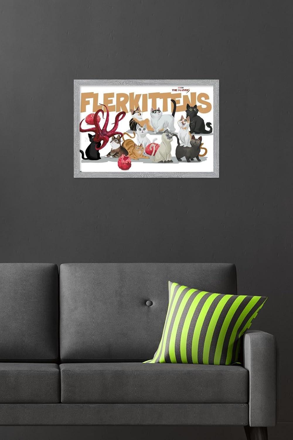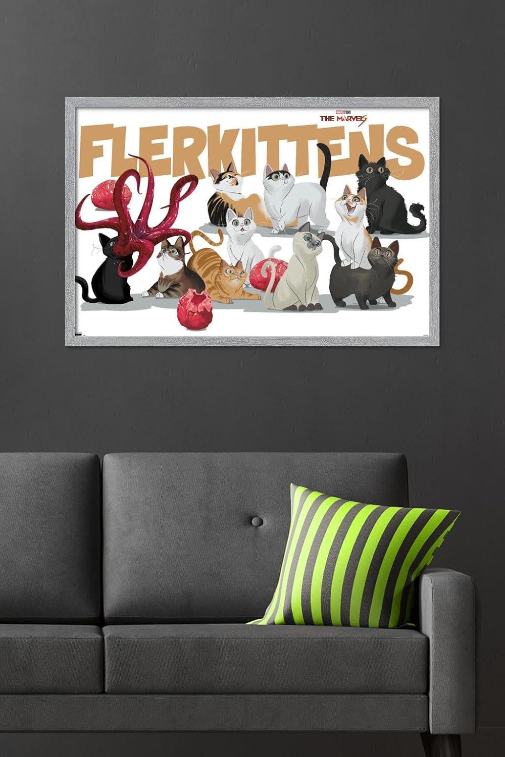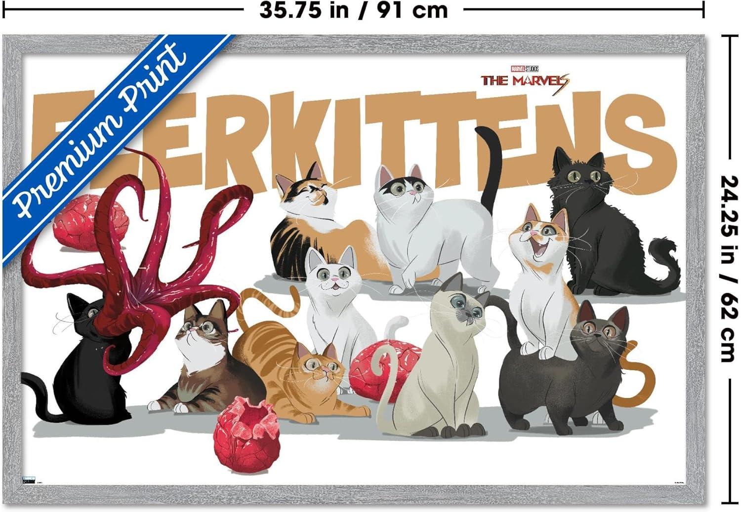 Trends International Marvel The Marvels – Flerkittens Wall Poster, 34L x 22.4W, Premium Unframed Version(Gray Framed Version)