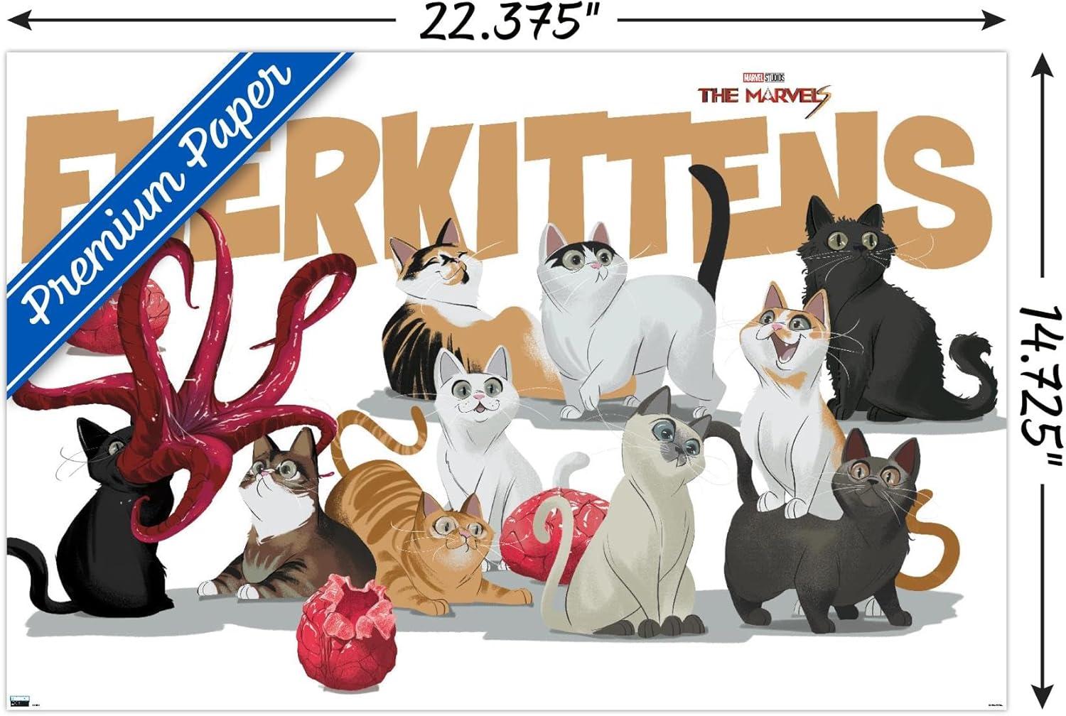 Trends International wall posters are everyone's favorite room decor! This Marvel The Marvels – Flerkittens Wall Poster is created with high-resolution artwork and is printed on glossy poster paper which enhances the colors to make a bold wall decor statement in any room. Decorate the bedroom, bathroom, kid's room, living room, office, dorm, and more! Our art prints are lightweight and easy to hang using the included adhesive poster mounts that won't leave holes in your poster or damage your wall like nails, thumb tacks, or push pins. Every one of our premium posters are proudly Made in the USA. Add these decorations alongside the other accessories on your party supplies list too! Trends International's wall posters are the perfect way to dress up your parties. Poster bundles make great gifts as well! Whether it's for a birthday, Christmas, house warming or for your best friend, they'll love receiving a poster and mount bundle to show off their style.
