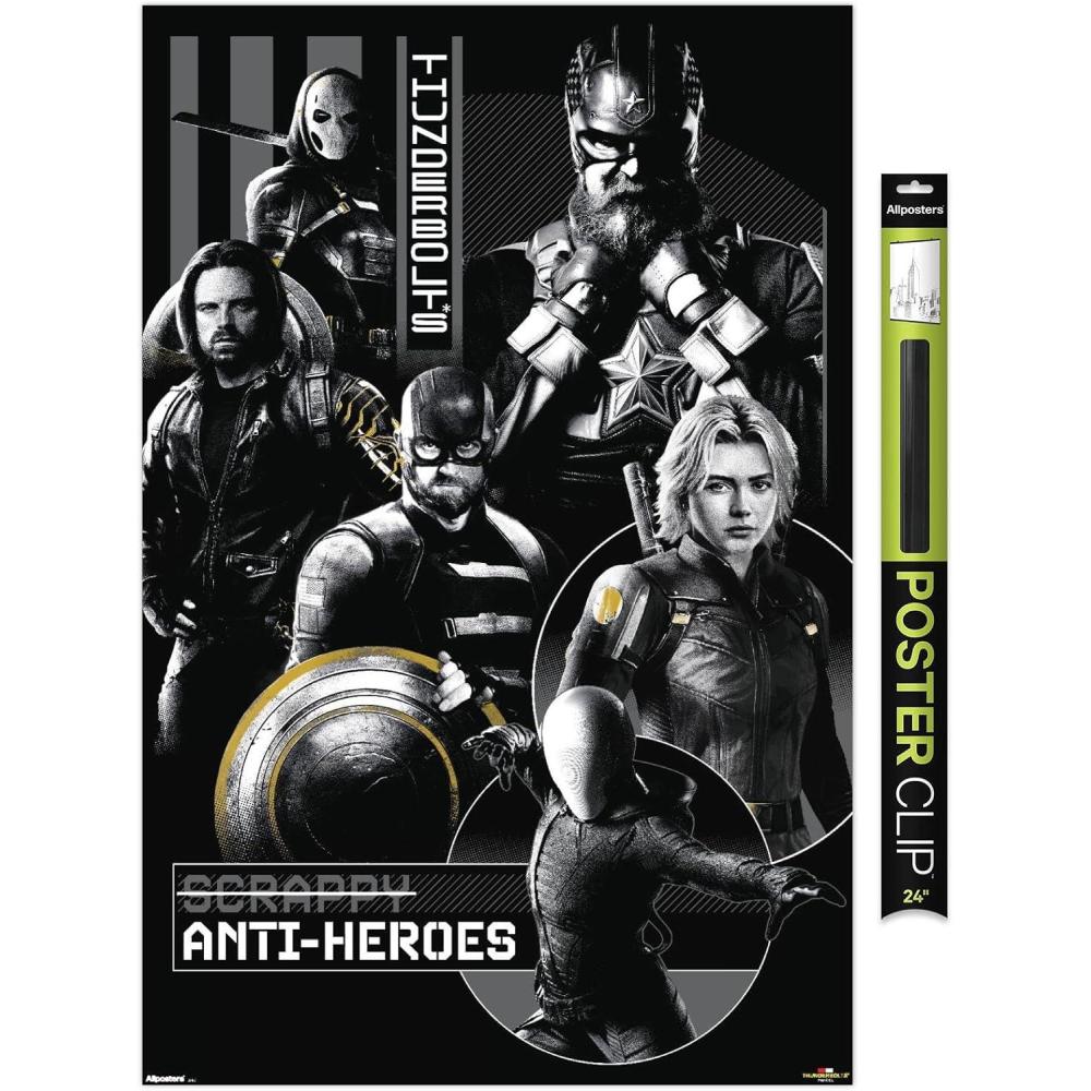 Allposters wall posters are everyone's favorite room decor! This Marvel Thunderbolts – Group Wall Poster is created with high-resolution artwork and is printed on glossy poster paper which enhances the colors to make a bold wall decor statement in any room. Decorate the bedroom, bathroom, kid's room, living room, office, dorm, and more! Our art prints are lightweight and easy to hang using the included adhesive poster mounts that won't leave holes in your poster or damage your wall like nails, thumb tacks, or push pins. Every one of our premium posters are proudly Made in the USA. Add these decorations alongside the other accessories on your party supplies list too! Allposters's wall posters are the perfect way to dress up your parties. Poster bundles make great gifts as well! Whether it's for a birthday, Christmas, house warming or for your best friend, they'll love receiving a poster and mount bundle to show off their style.