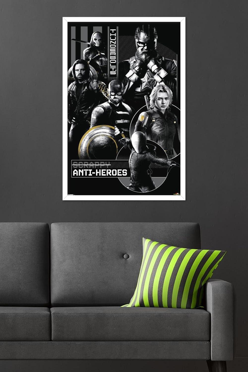 Allposters wall posters are everyone's favorite room decor! This Marvel Thunderbolts – Group Wall Poster is created with high-resolution artwork and is printed on glossy poster paper which enhances the colors to make a bold wall decor statement in any room. Decorate the bedroom, bathroom, kid's room, living room, office, dorm, and more! Our art prints are lightweight and easy to hang using the included adhesive poster mounts that won't leave holes in your poster or damage your wall like nails, thumb tacks, or push pins. Every one of our premium posters are proudly Made in the USA. Add these decorations alongside the other accessories on your party supplies list too! Allposters's wall posters are the perfect way to dress up your parties. Poster bundles make great gifts as well! Whether it's for a birthday, Christmas, house warming or for your best friend, they'll love receiving a poster and mount bundle to show off their style.
