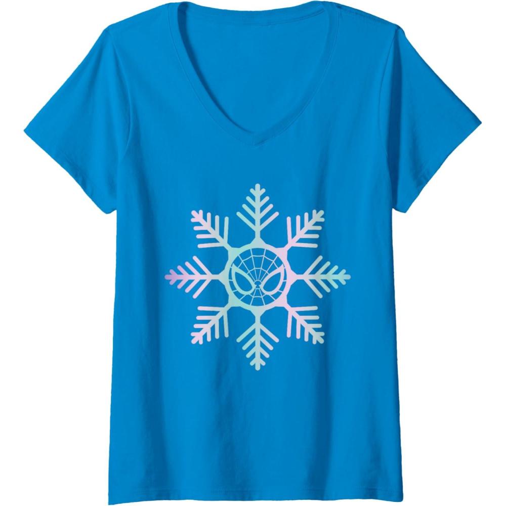 Womens Marvel Spider-Man Winter Holiday Snowflake Logo V-Neck T-Shirt(Sapphire Blue)