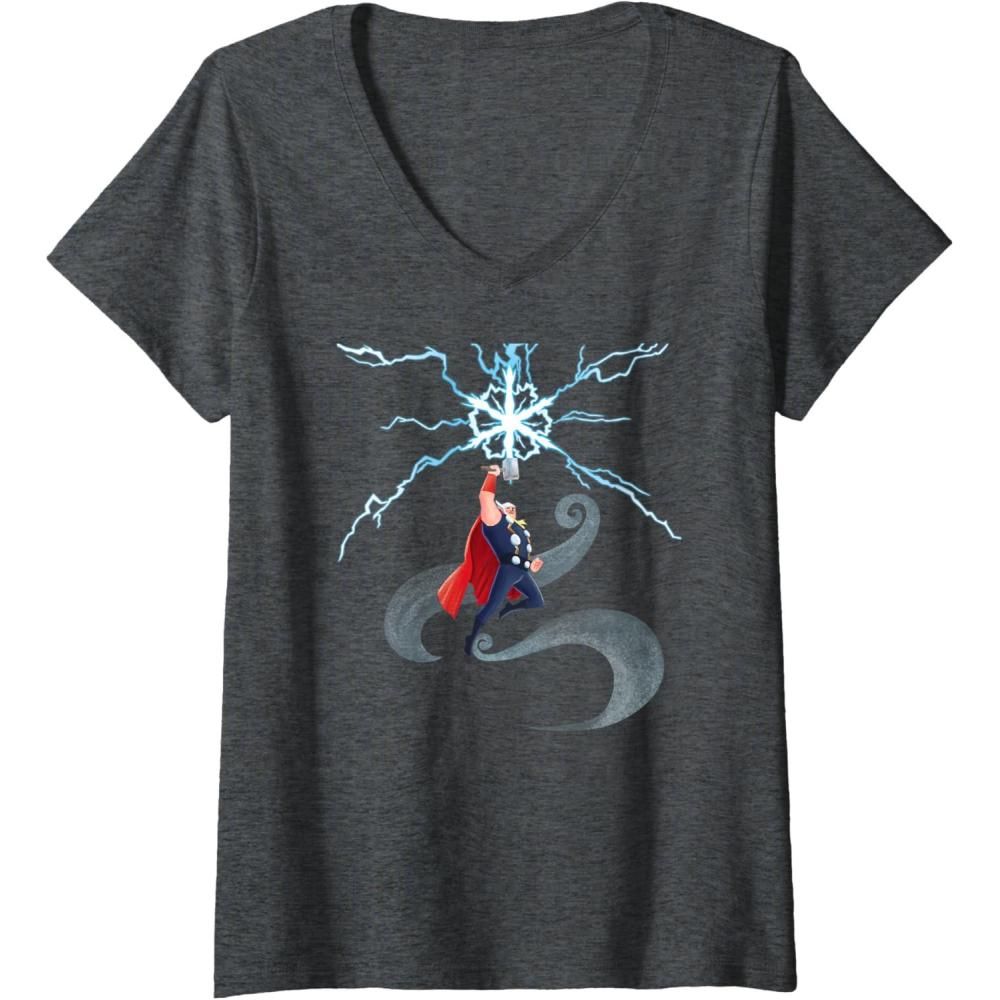 Womens Marvel Thor Winter Snowflake Holiday V-Neck T-Shirt(Dark Heather Grey)