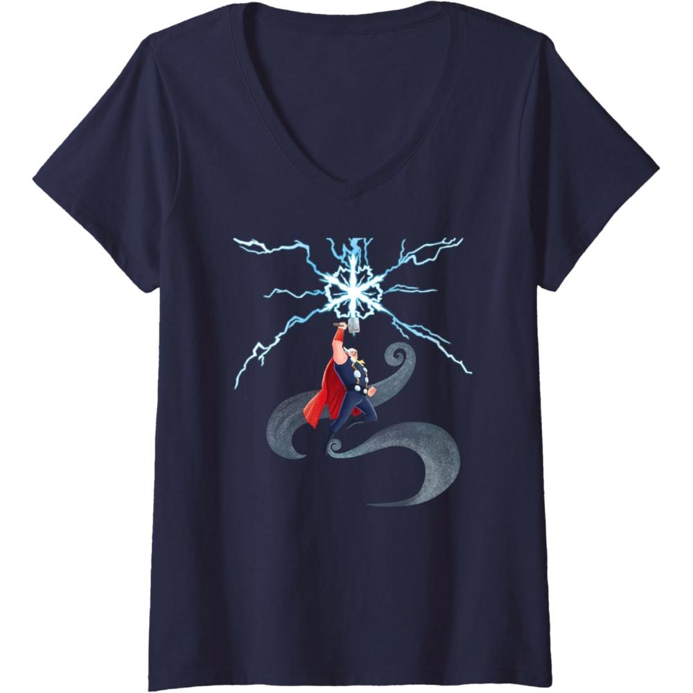 Get your hands on our exclusive Womens Marvel Thor Winter Snowflake Holiday V-Neck T-Shirt(Navy Blue) collection, now at a discounted price.