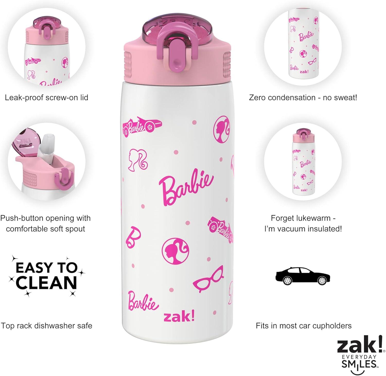 Zak Designs Marvel Spider-Man Water Bottle for Travel and At Home, 19 oz Vacuum Insulated Stainless Steel with Locking Spout Cover, Built-In Carrying Loop, Leak-Proof Design (Miles Morales)(Barbie)