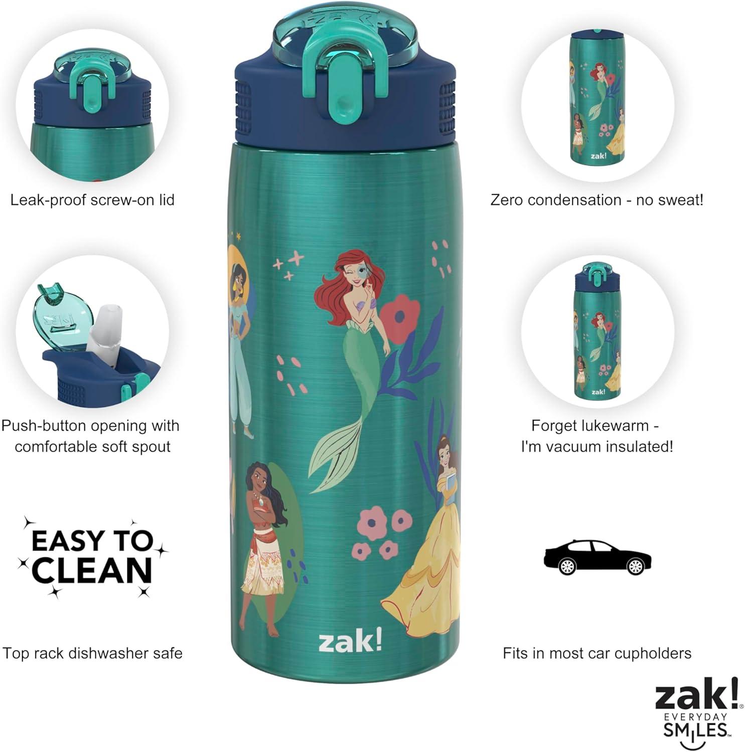 Make hydration easy and fun with a reusable water bottle by Zak Designs! Vacuum Insulation: The drinking bottle has vacuum insulation that keeps drinks cold for up to 20 hours, so your water is always refreshingly chilled. The double-wall construction also prevents condensation from forming on the outer walls, eliminating messy water rings.Reusable and Durable Material: Reusable water bottles will last wash after wash—good news for you and the environment! The 19 oz water bottle is made with food-grade, 18/8 stainless steel, durable enough to use every day and bring on any trip. Leak-Proof Lid: The lid screws on securely and won't leak when the spout is closed, though water flows for easy drinking when the spout is open. The easy-open button has a flip-up lock to keep it from activating accidentally. On the Go: The water bottle has a built-in carrying loop on the lid for easy transportation, and with the spout cover to keep the spout clean and closed, it can be tossed into a bag for worry-free travel. Specifications: 19 oz capacity. Vacuum insulated, stays cold up to 20 hours. Made of durable stainless steel. BPA-Free – Zak is committed to safety. Hand washing recommended, do not microwave. Length: 4.4-inch, Width: 2.83-inch, Height: 8.75-inch. Character: Miles Morales (Marvel Spider-Man).