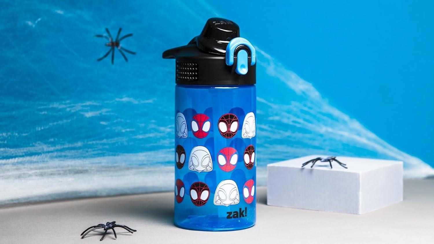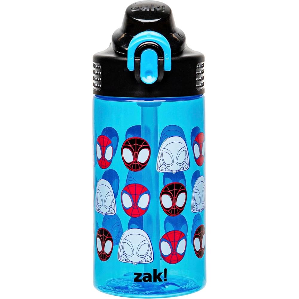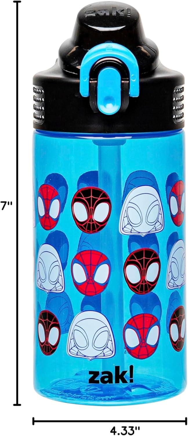 Let kids enjoy hydration with a fun water bottle from Zak Designs, featuring Marvel's Spider-Man! Reusable and Durable Material This reusable bottle will last wash after wash; good for you and good for the environment! The 16 oz. water bottle is made of PP plastic, durable enough for kids to use every day. Leak-Proof Lid The lid screws on securely and won't leak when the spout is closed. The easy-open button has a flip-up lock to keep it from activating accidentally. On the Go The water bottle has a built-in carrying loop on the lid for easy transportation, and with the spout cover to keep the spout clean and closed, it can be tossed into a bag for worry-free travel. Care and Use The bottle is dishwasher safe and should not be microwaved. Recommended for children ages 3 and up. By Zak Designs, making mealtime fun!