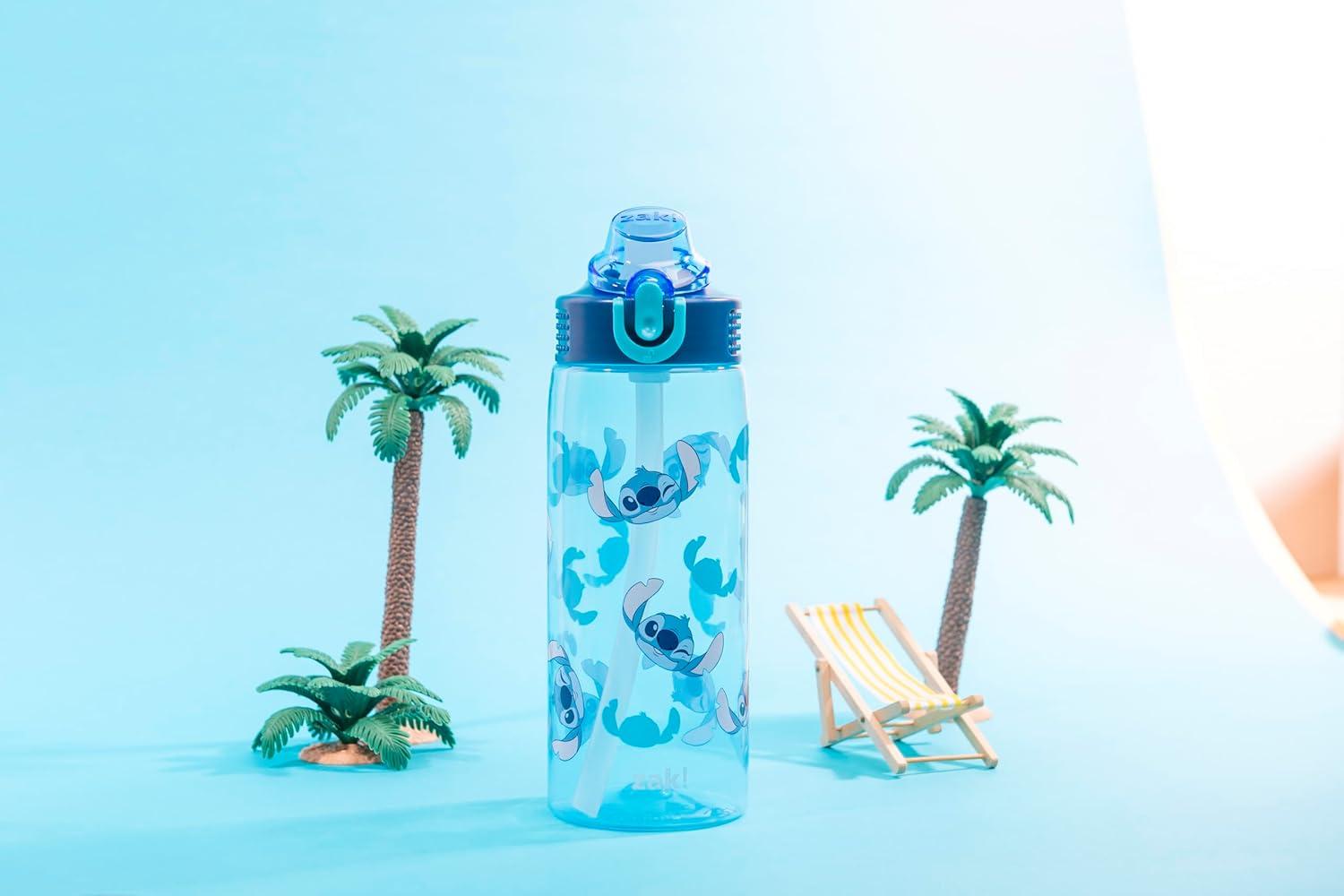 Zak Designs Marvel SpiderMan Kids Spout Cover and Built-in Carrying Loop Made of Plastic, Leak-Proof Water Bottle Design (16 oz, BPA-Free)(Stitch)